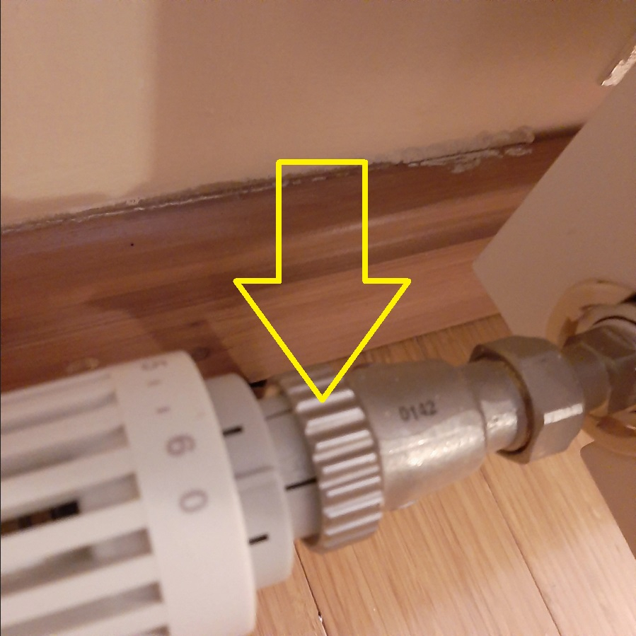 Thanks for that. What it's now doing when set to 0 is allowing the radiator to heat up for a very short time when the central heating first comes on but then turning off and going cold as intended and staying off as I want it to be. Don't get why it comes on for a short time before turning off. The pin is still extremely difficult to move despite use of lubricant. I can live with it as it is although would be happier if it didn't come on at all when set to 0.Bendy_House said:Digannio, undo only the serrated collar arrowed below. This should undo anti-clockwise as normal. First turn the TRV head to 'max' as this should release pressure from it.The valve exposed underneath will have a metal pin sticking out. This should be pushable inwards with a firm thumb-push, should bottom-out with a nice firm 'clunk', and should spring back out instantly when released. If it does, then it's almost certainly working fine.Inside the TRV head you'll see the part that pushes on this pin - see if that moves in and out as you turn the TRV head. If it doesn't, then almost certainly it's just the 'head' that's failed, and a new one can be screwed on.