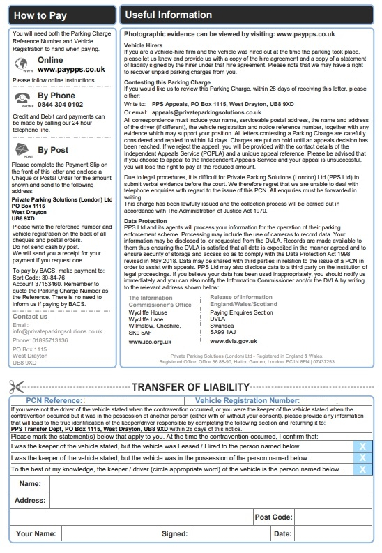 3) The details invite the registered keeper to provide driver details within 28 days and makes it clear that failure to confirm these details will result in the keeper becoming responsible for any unpaid parking charges. As I have explained earlier in my assessment, I am satisfied that the requirements of PoFA have been followed and liability has been established with the registered keeper.
