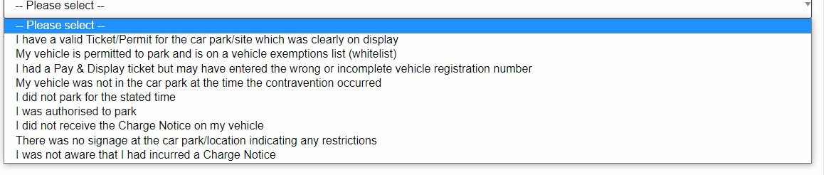 Hello, I was about to submit my appeal this morning but they have this mandatory field for reason. Will selecting one of these imply I was the driver due to the tense they are using?