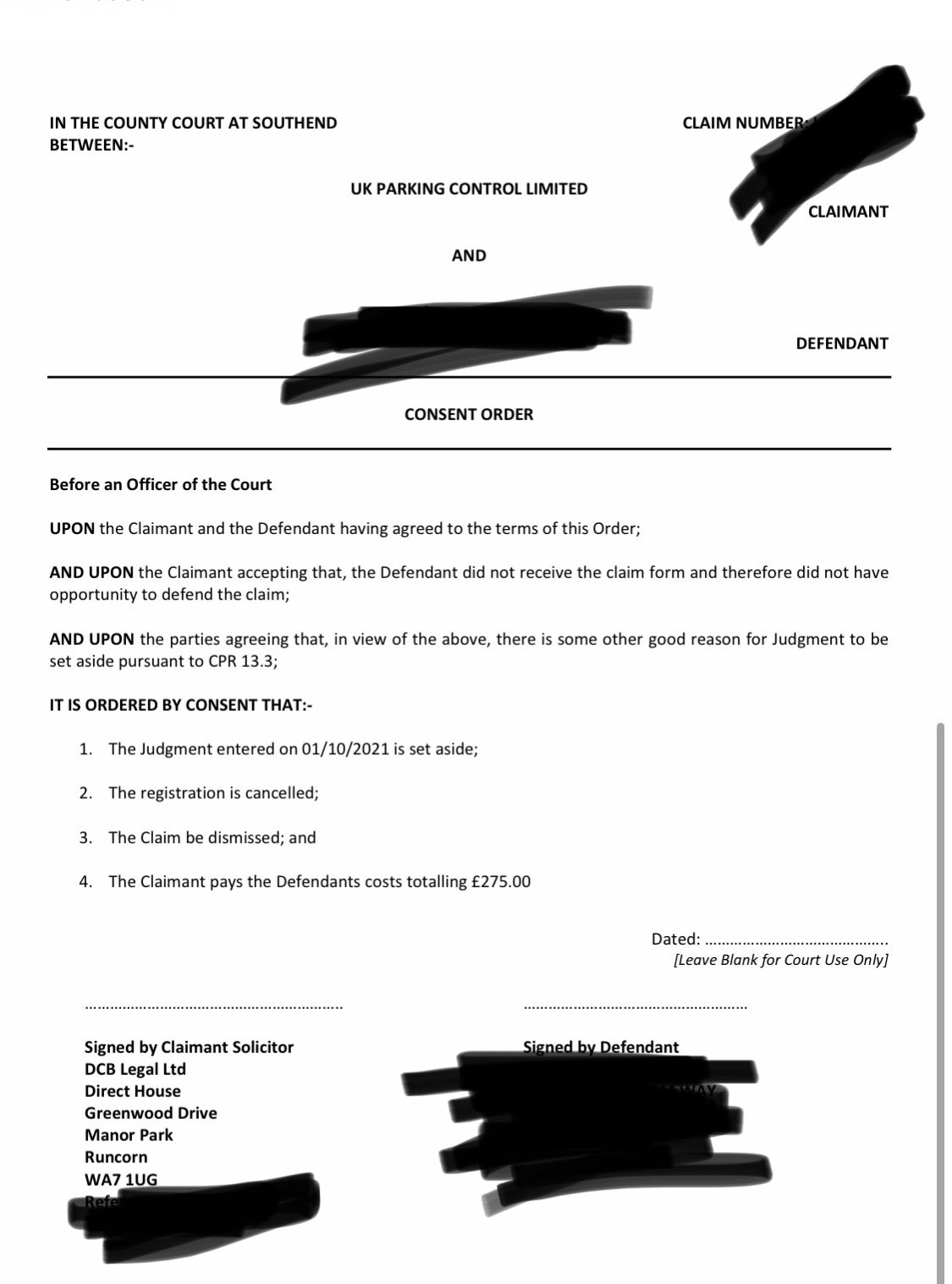 Also don't forget to file and serve a costs assessment too. See and read the recent thread by @msx999 for what happened in their case and how the Claimant tried to trick the court into ordering no costs.I've suggested some new wording today in that thread, to add in order to secure costs and to make it clear that any draft Order supplied by the C is a disingenuous attempt at damage limitation.PRIVATE 'PCN'? DON'T PAY BUT DON'T IGNORE IT (except N.Ireland).