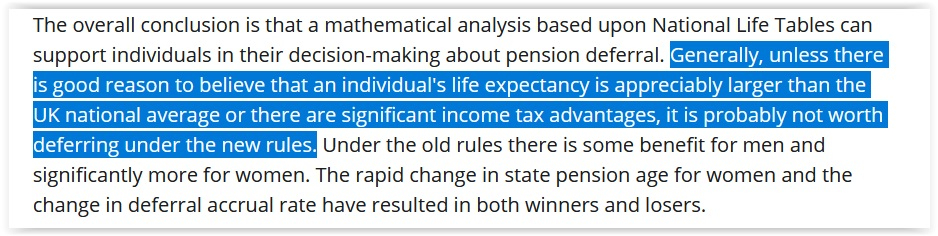 Daliah said:Have a look at what Dr. John Dagpunar, visiting Research Fellow within Mathematical Sciences at the University of Southampton worked out in 2015. Since then, SP age has been equalised, so the advantage women still had for a few years has now also evaporated and now it's not worth anyone's while except for those who could make income tax savings, as mentioned earlier.0