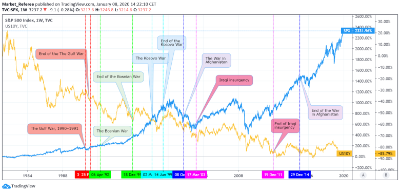 I posted the stock market performance during the war / conflict in other thread. As you could see it went down significantly but it is going up again thereafter. But It is up to you to interpret it and making judgement.