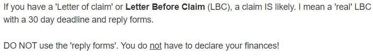 Righteo ... the guide said to email the solicitor which confused me. There is no solicitor in this case as the letter is recieved from Excels Litigation Department.