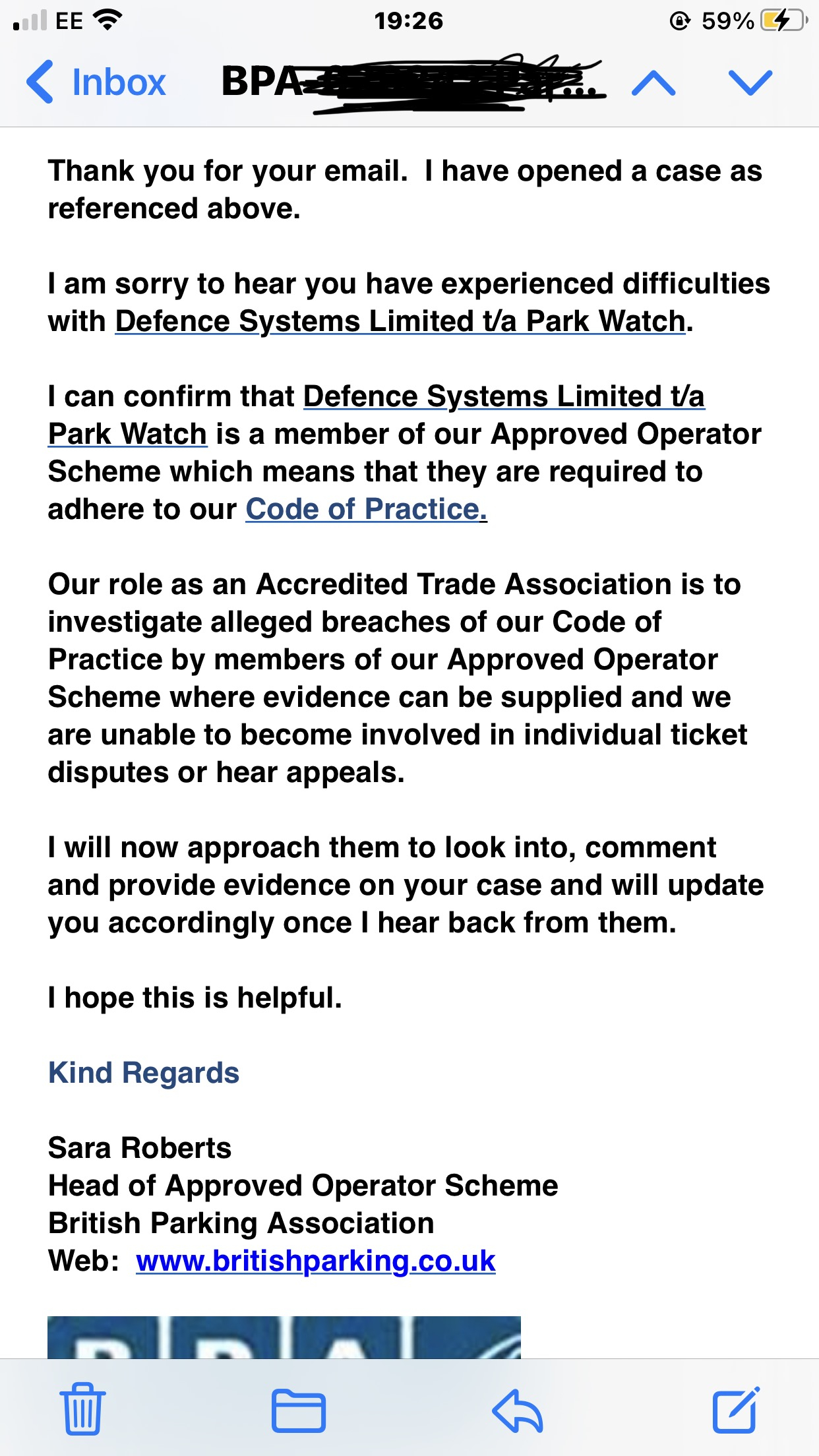 - the PCN is predatory self-ticketing for a bounty. ParkWatch's website offers a 10% 'client revenue rebate' (bounty per PCN) and talks about a 'new i-ticket service for 2022'. This avoids putting PCNs in windscreens and breaches the new incoming DLUHC Code ban on this conduct by self-ticketers. as well as the Consumer Rights Act 2015 requirement for prominently drawing consumer notices (PCNs and signs) to the attention of consumers. The sign picture shows it's round the back of a pillar.