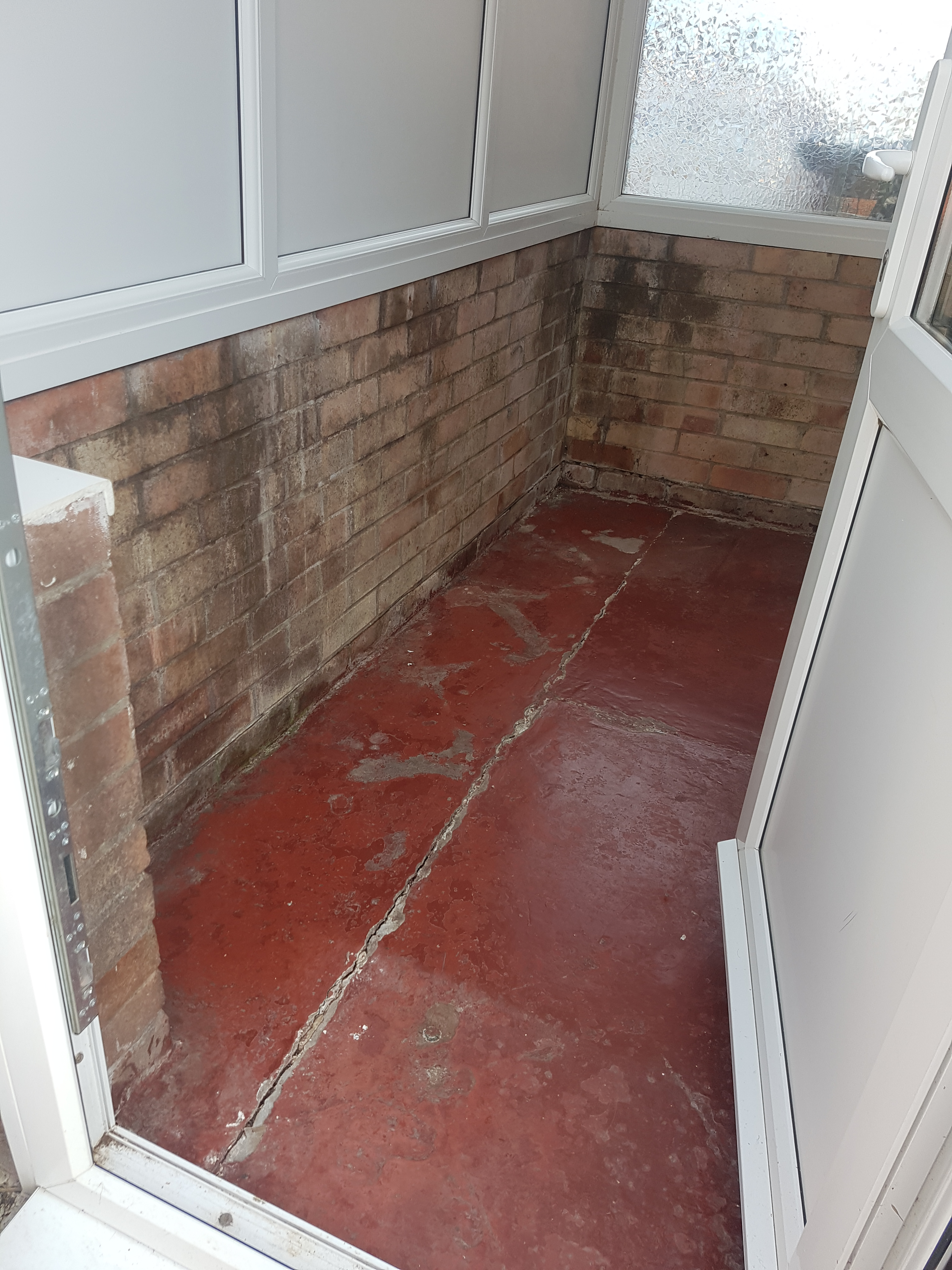 I have porch connected to the kitchen that I want to update as the single brickwall looks horrendous as well as the cracked painted floor.