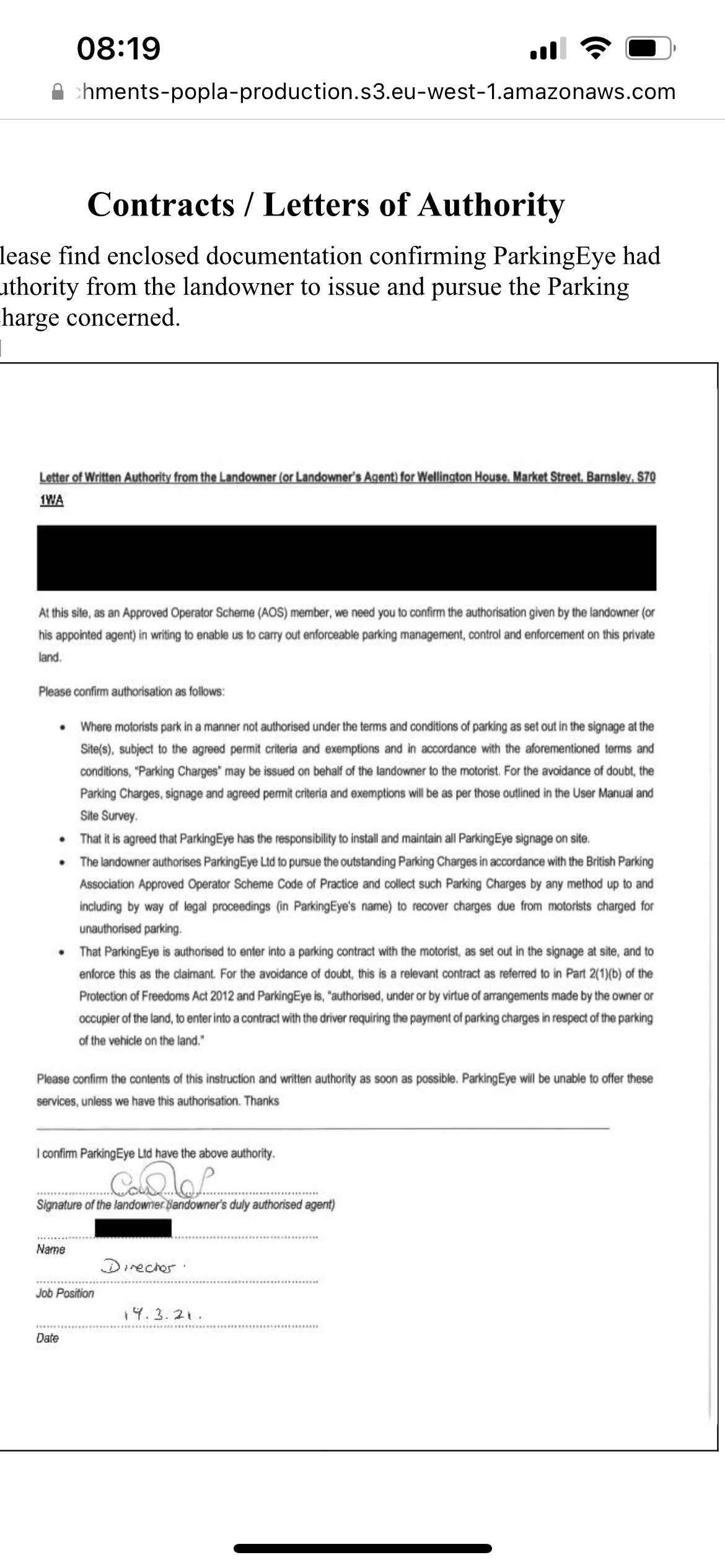 POPLA will more than likely accept that, but you must point out that there is no indication of what organisation is providing that authority. I wouldn't concentrate on the signatures, more on which organisation, and where they sit in the line of authorities stemming from the landowner. I think the BPA Code of Practice has something on this, so quote that.Please note, we are not a legal advice forum. I personally don't get involved in critiquing court case Defences/Witness Statements, so unable to help on that front. Please don't ask. .