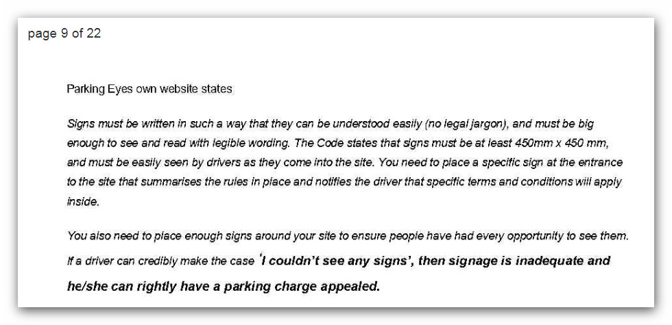 Tell you what everyone, we are going to have to remember that for PE defences and POPLA appeals. It's a great piece of evidence against them. Hoist by their own petard!PRIVATE 'PCN'? DON'T PAY BUT DON'T IGNORE IT (except N.Ireland).
