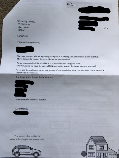 This is SIP's response. Payment overdue letter dated 21/3/2022 over 5 weeks after alleged offence. Lease company's letter NAMING me as the driver (though i wasn't and am not legally able to drive the vehicle). SIP's letter explaining they are not relying on POFA as i have been NAMED as the driver. Thoughts please.