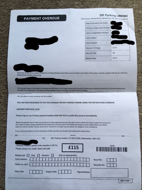 Parking Charge Notice [0123456789]: Vehicle Registration [AA11ABC]