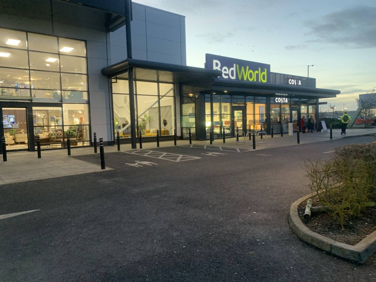 And the view which across the front of all of the shops. The costa coffee has since taken to putting their own sign in the window to warn drivers after a succession of complaints from drivers not being made aware of the restrictions.