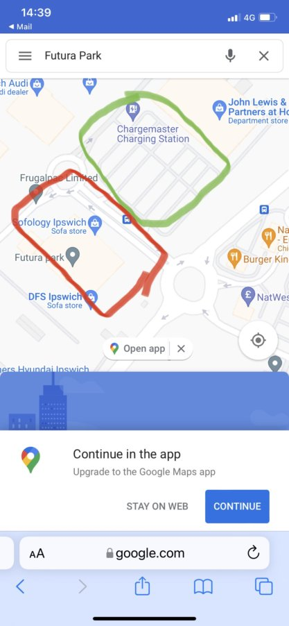 The only permissions granted in relation to the parking at Futura park is for the separate car park for John Lewis/Waitrose which operates an entirely different parking system located adjacent as shown on map here in green, the car park in question is in red
