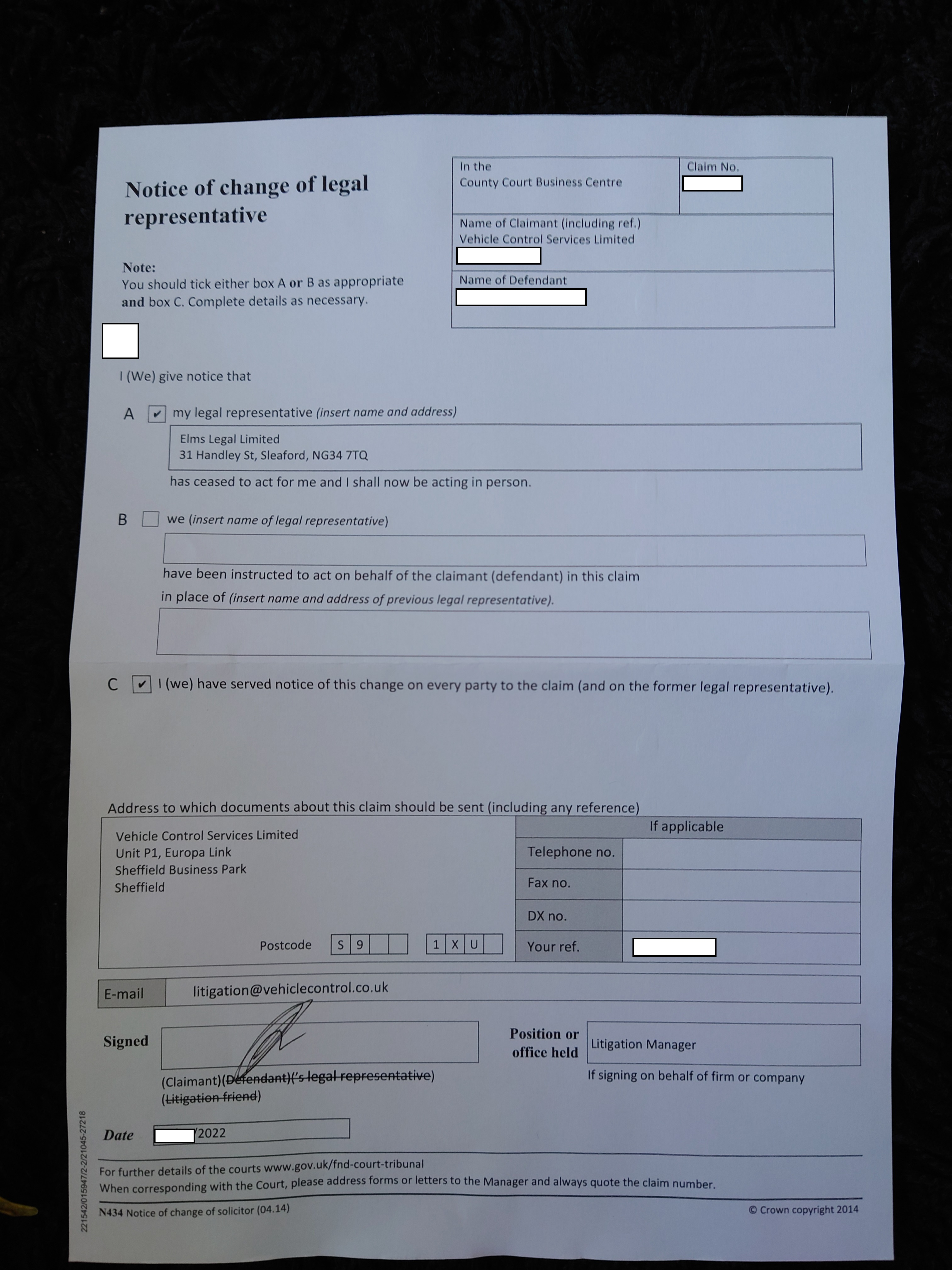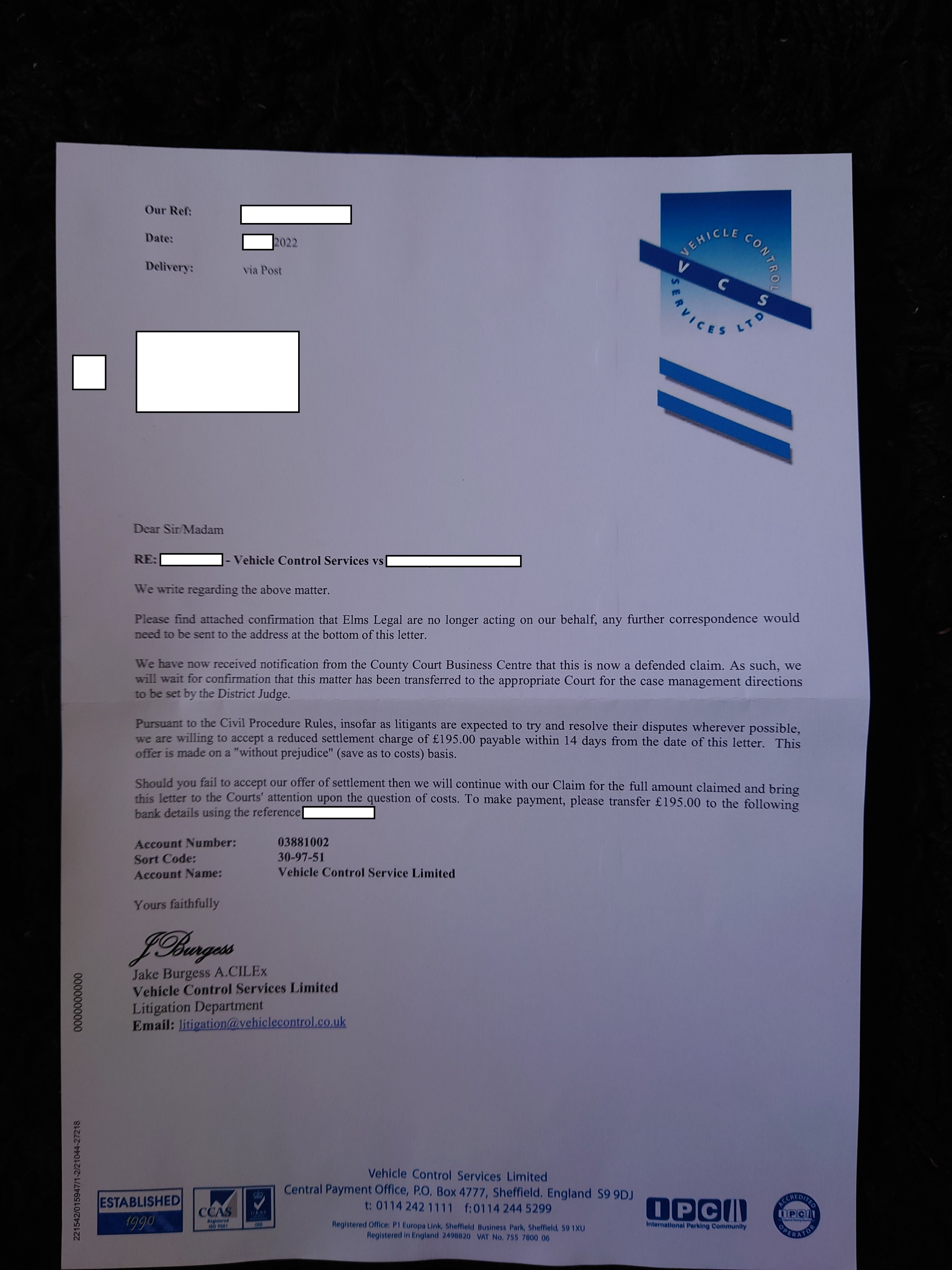 Just to VCS now.I really don't know what they are playing at in hiring Elms, then dropping them, case by case. This has being going on for months. It doesn't advantage or disadvantage you, it is what it is, just doesn't make sense!Please note, we are not a legal advice forum. I personally don't get involved in critiquing court case Defences/Witness Statements, so unable to help on that front. Please don't ask. .