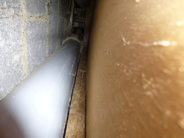 The first photo is the square duct from the inside which also shows part of the adjoining wall and mortar. The mortar seems to be crumbling and there's some small cracks in the blocks. I noticed some bits of mortar around the pump on the kitchen floor. Could the smell be getting through these cracks directly?
