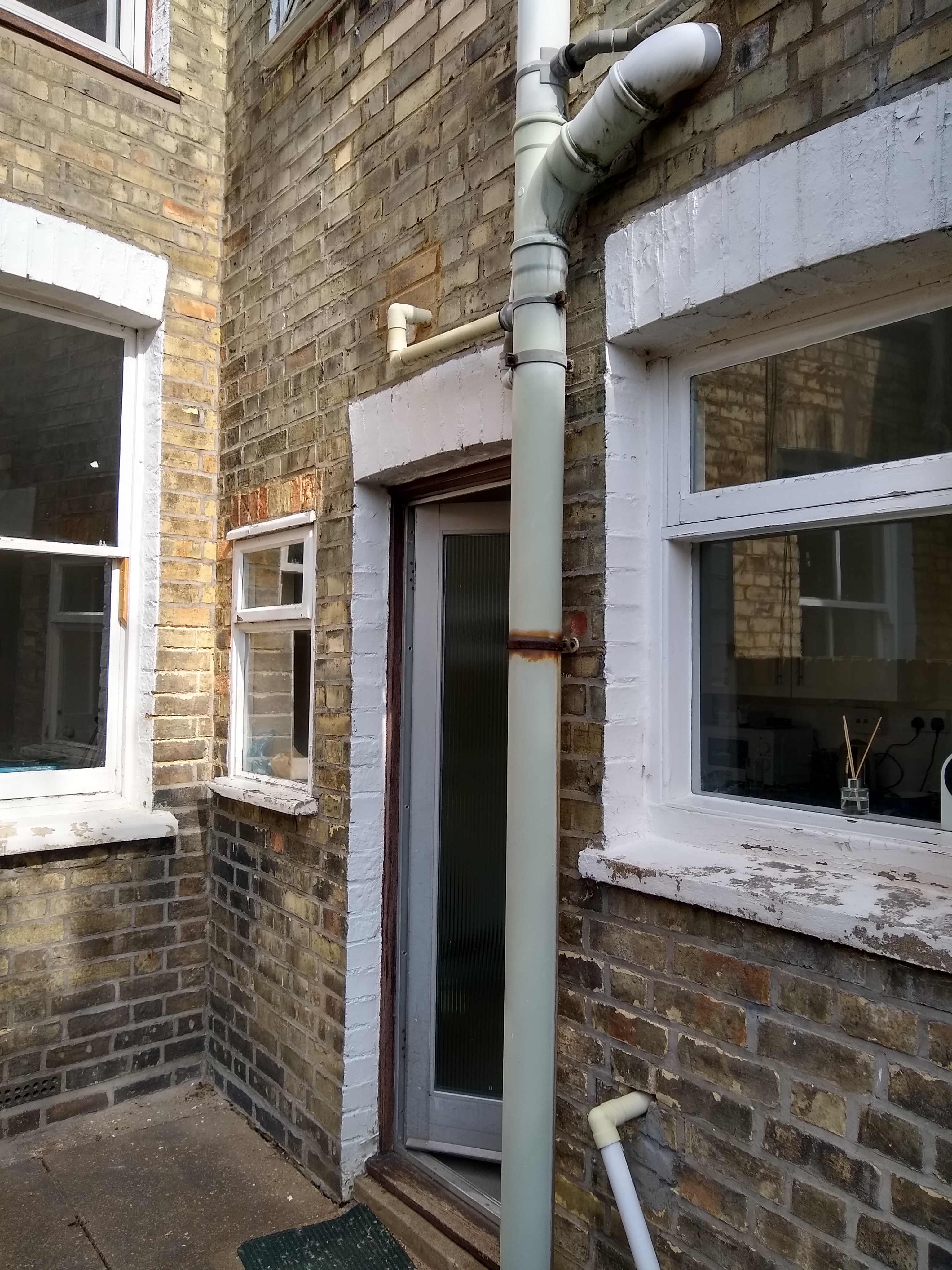 KnittingAmy said:We plan to get rid of the door but aren't sure how to deal with the windows. In an ideal world, we would probably get one long window installed (the old ones will need work/replacement anyway). However, on the outside, pipes come down from the bathroom and we don't know how much of a practical issue rerouting those would be (we suspect a significant one).Is there another door from the house to the back garden? If not, you'll need to consider means of escape from the house if you would be reliant on only one (front?) door.The soil pipe could be moved, but will probably involve digging up the path and redoing some of the underground drainage as well. Not a massive job, but one that won't be cheap and you'd need to look at what benefits you'd get for the expense.1