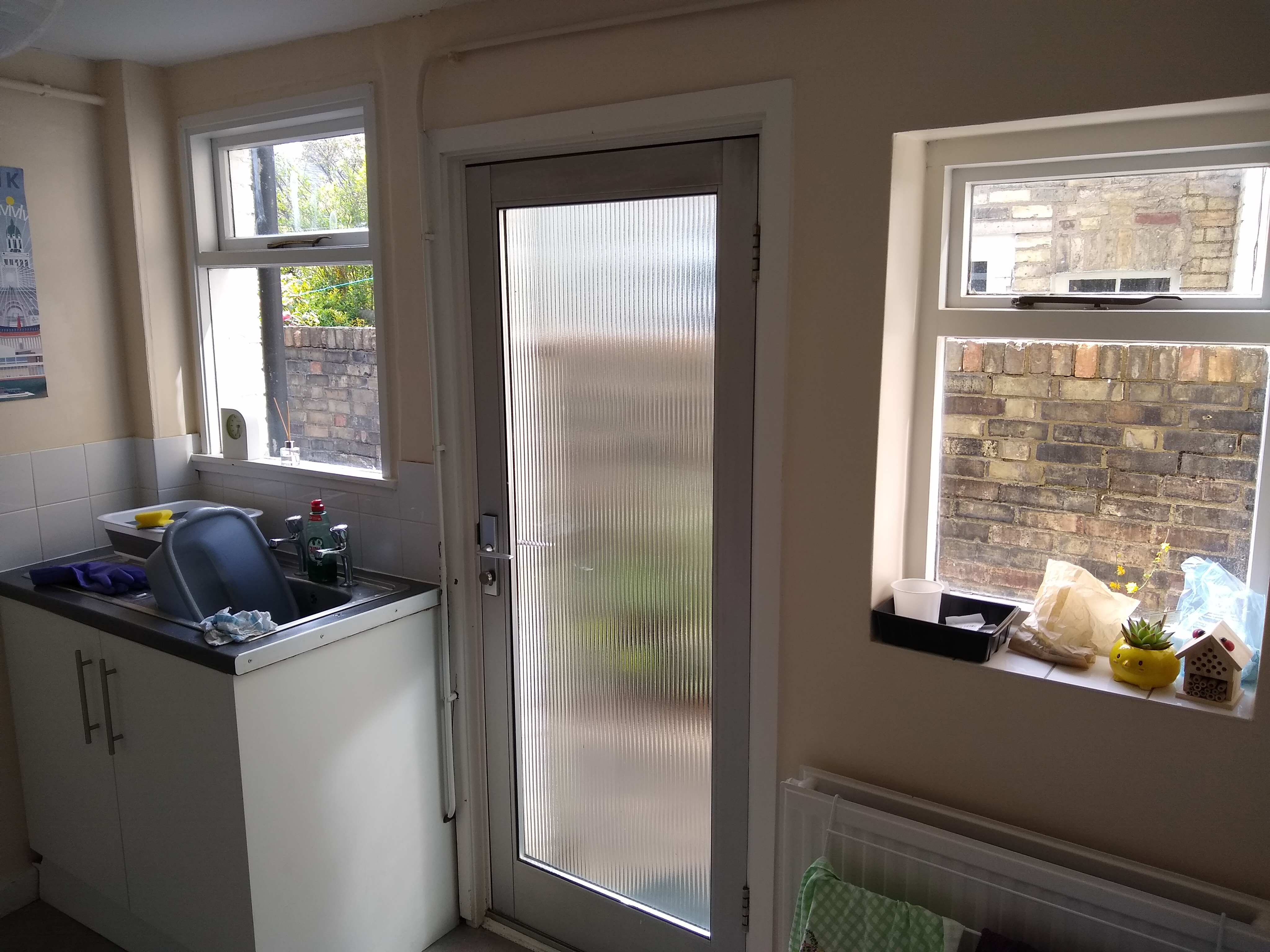 We plan to get rid of the door but aren't sure how to deal with the windows. In an ideal world, we would probably get one long window installed (the old ones will need work/replacement anyway). However, on the outside, pipes come down from the bathroom and we don't know how much of a practical issue rerouting those would be (we suspect a significant one). I've been wondering whether just blocking up the door and keeping the two windows where they are would be a good option - much simpler on the building front and would give some extra space for shelves. But then we would lose some light. Thanks in advance for any suggestions 🙂
