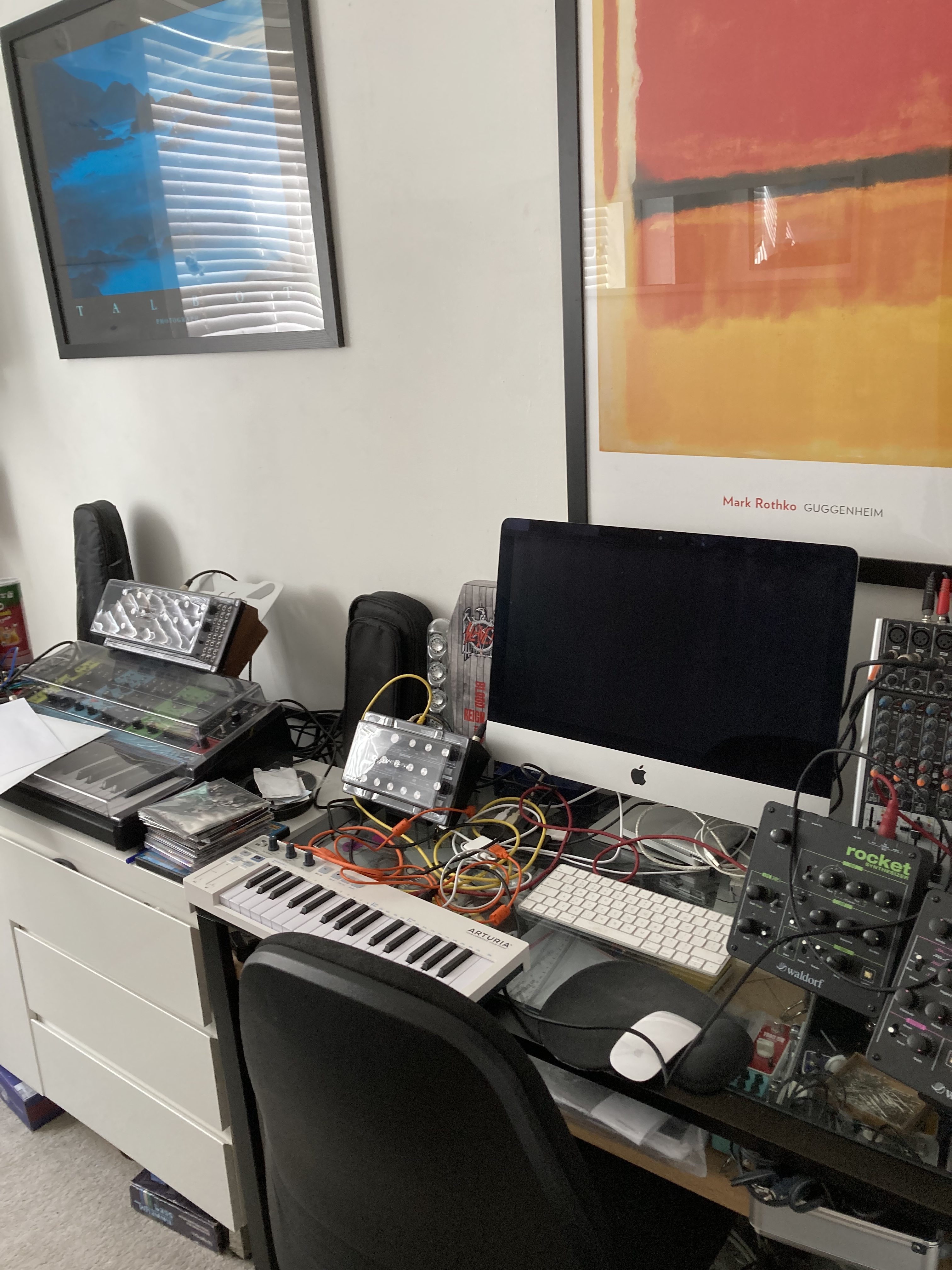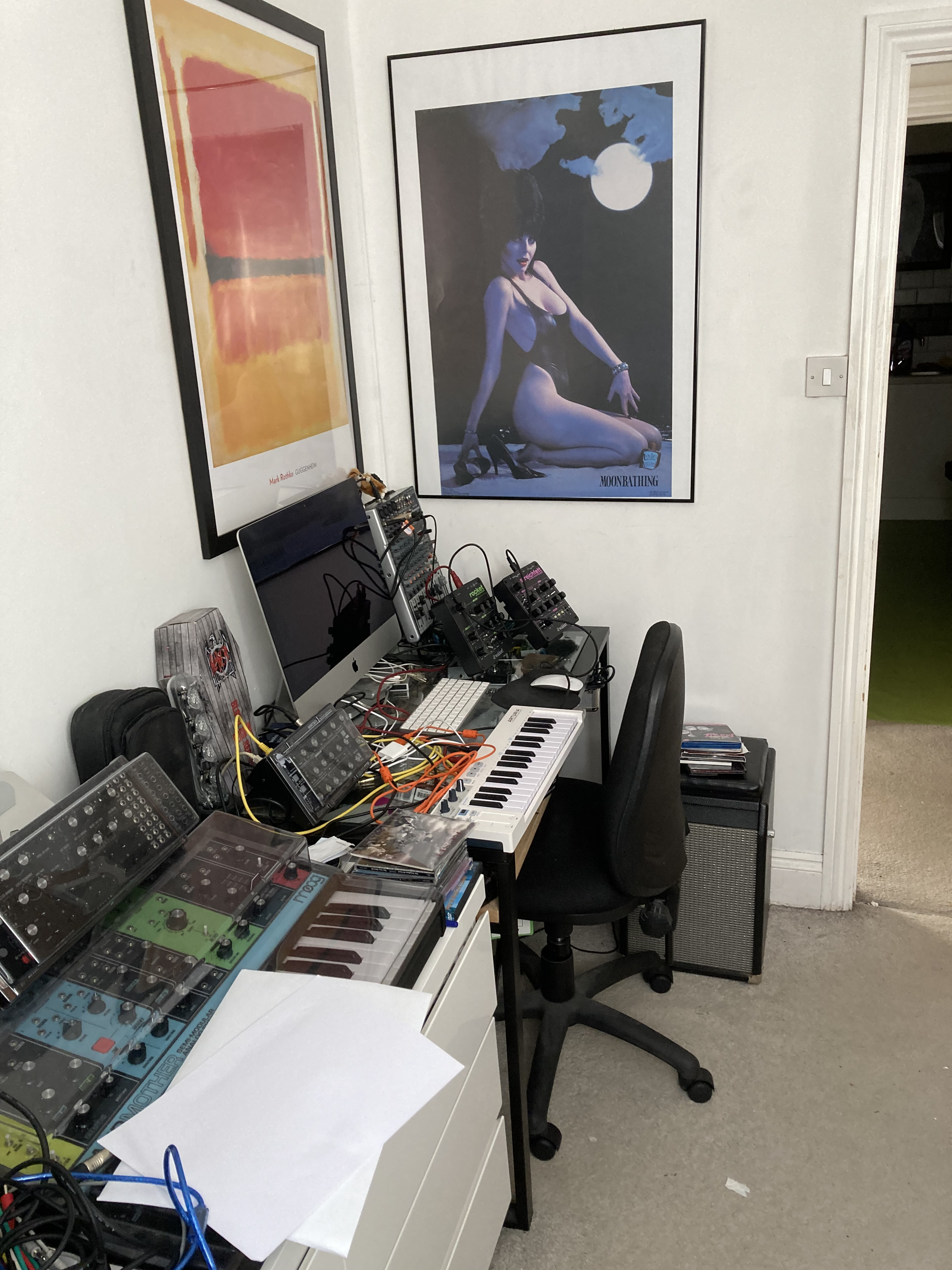 I was thinking of possibly a computer hideaway desk / computer wardrobe etc, but that synth on-top of the sideboard wouldn’t fit . A few bass guitars are currently behind the sideboard.