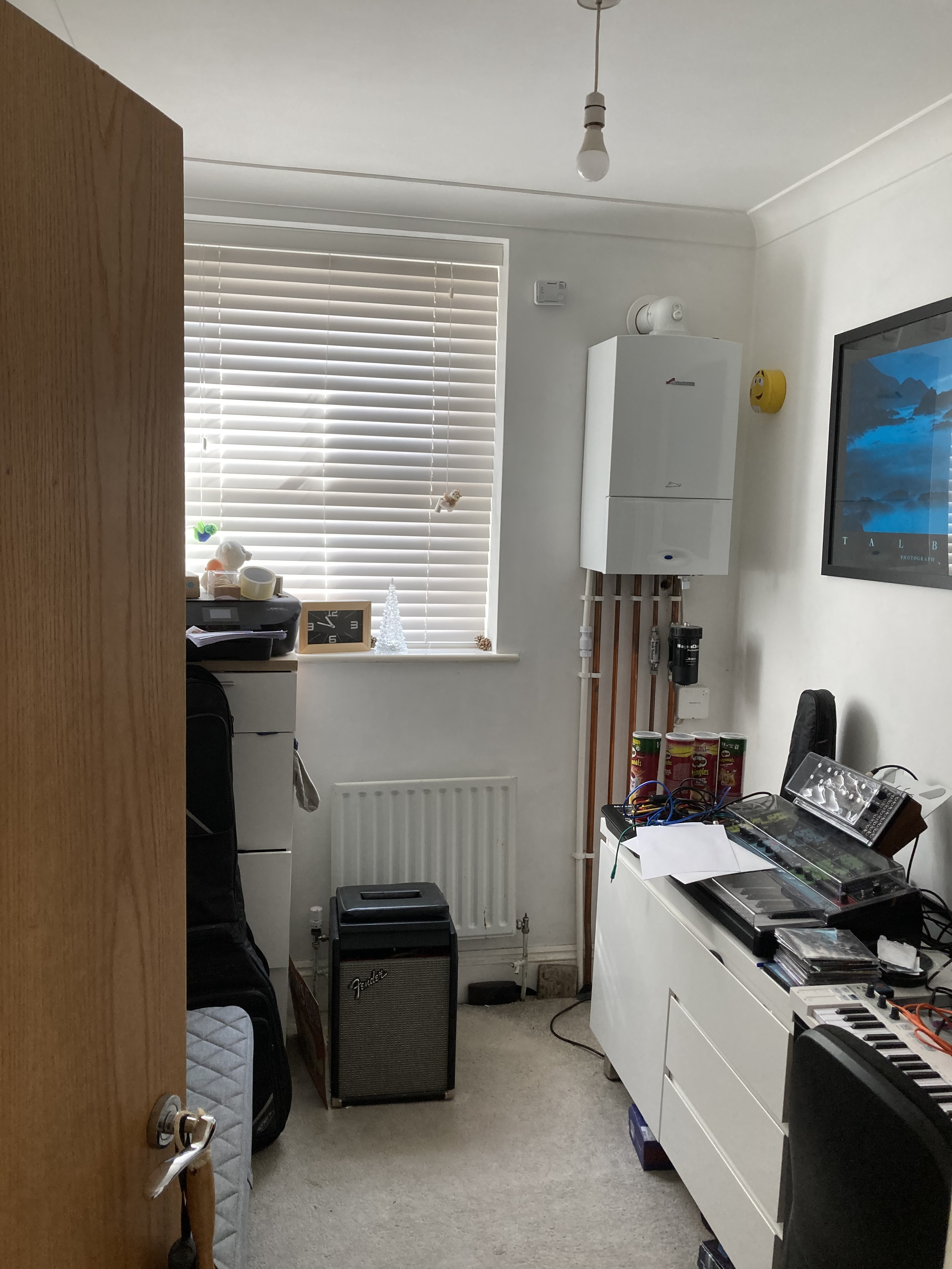 oh, and the boiler is in the small bedroom! Fair enough I said after much hesitation, as that would be the music room. This is basically a home office design also although I don’t work from home .