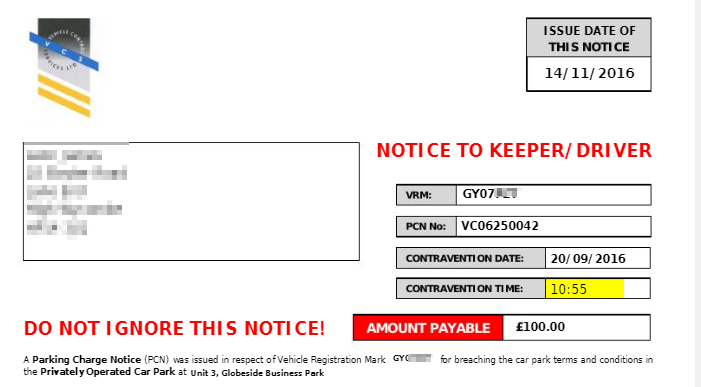 - The proof sent was the car registered to me parked on a private location (which looks like it could be anywhere).