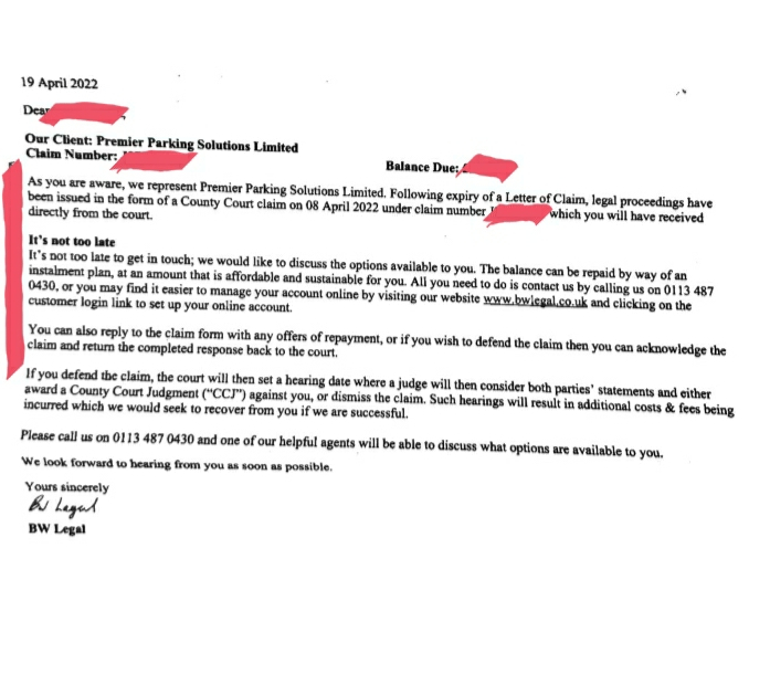 Complaints to the SRA are required. That is the proper fightback to this misleading and intimidating letter. Easy to report BW Legal online.PRIVATE 'PCN'? DON'T PAY BUT DON'T IGNORE IT (except N.Ireland).