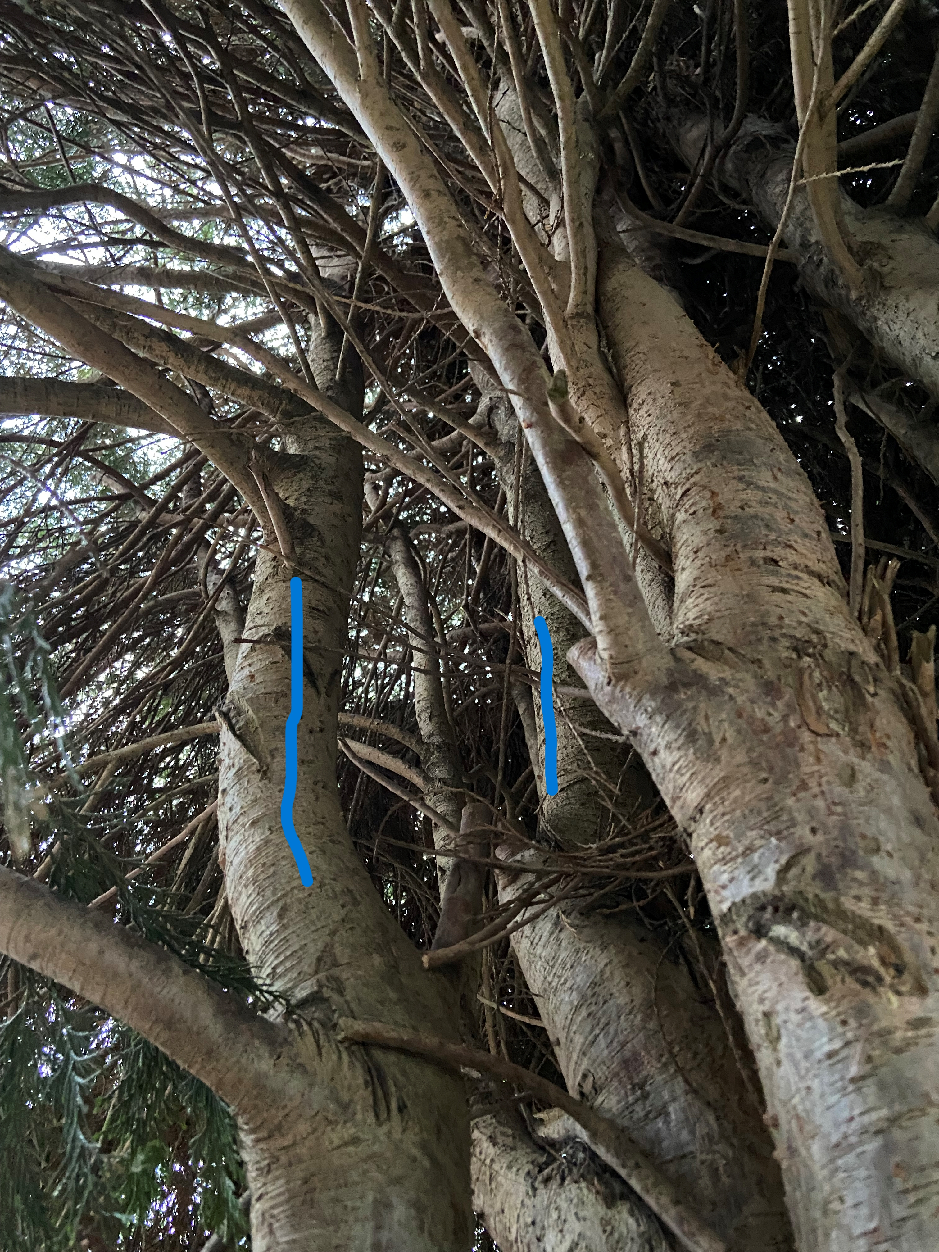 They want to remove a couple of the branches/stumps (I don't know what they are call) - on the 3rd pic I have marked in blue what they want removed. She feels this will remove a lot of the branches hanging over her fence.