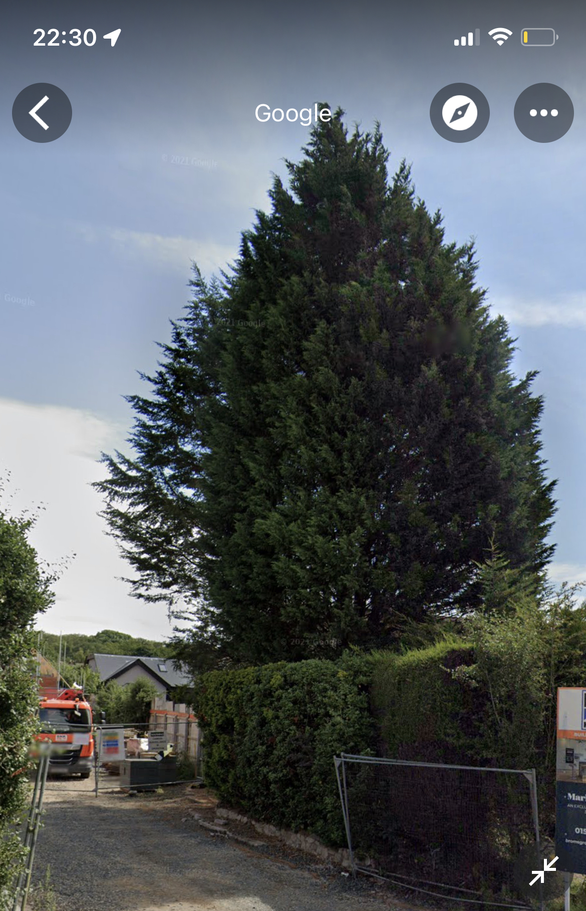 Just trying to figure out the best way forward and right now I'm (maybe) happy to pay for a trimming of the tree but I don't know if this tree will grow in to a monster - in which case I could look to remove it now.Here's 'ours'. That's my roof in the background! 6ft site fencing for scale.