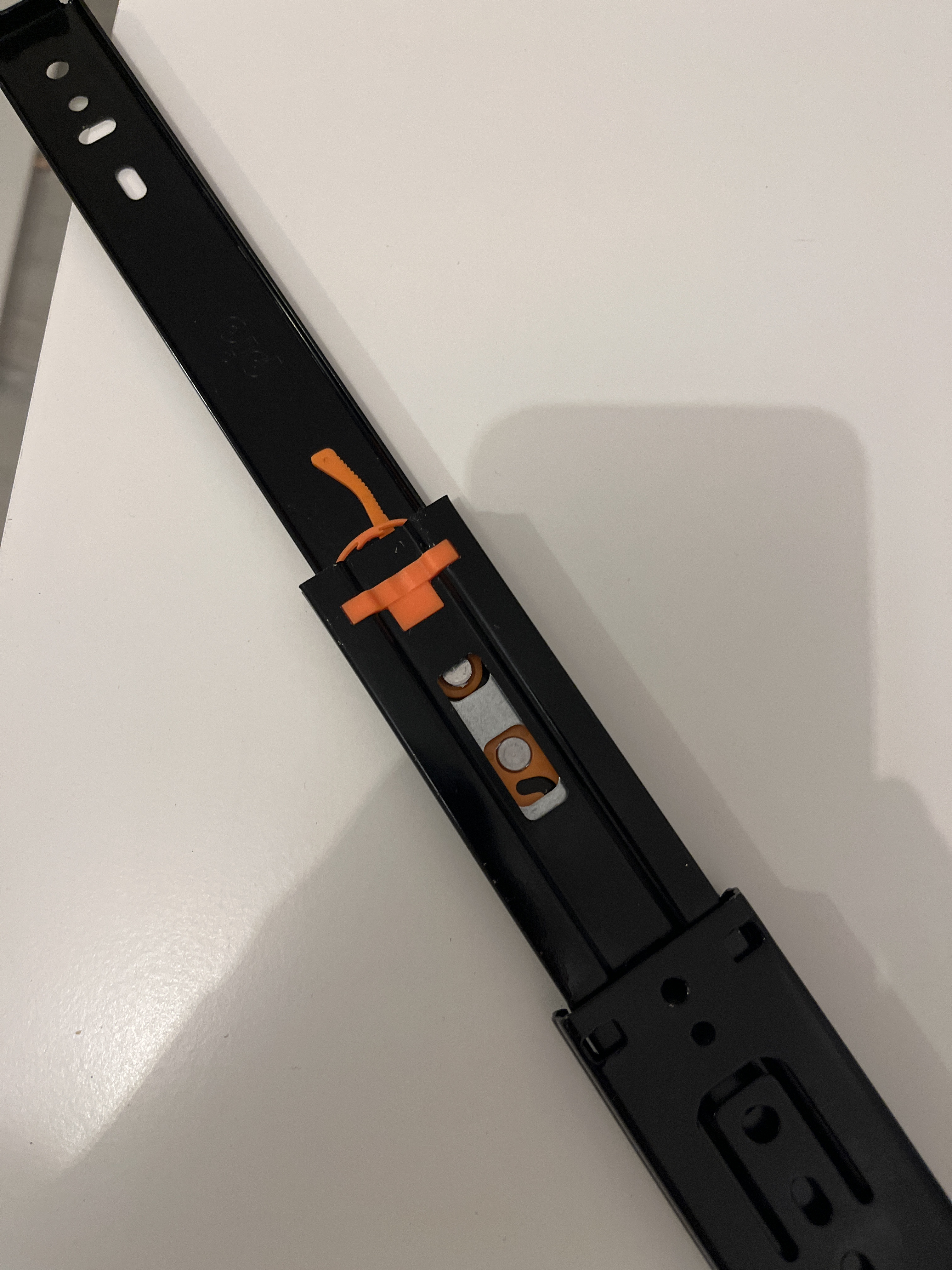 Trying to put together a ladder shelf and drawers but the small plastic level that detaches the drawer isn’t working.