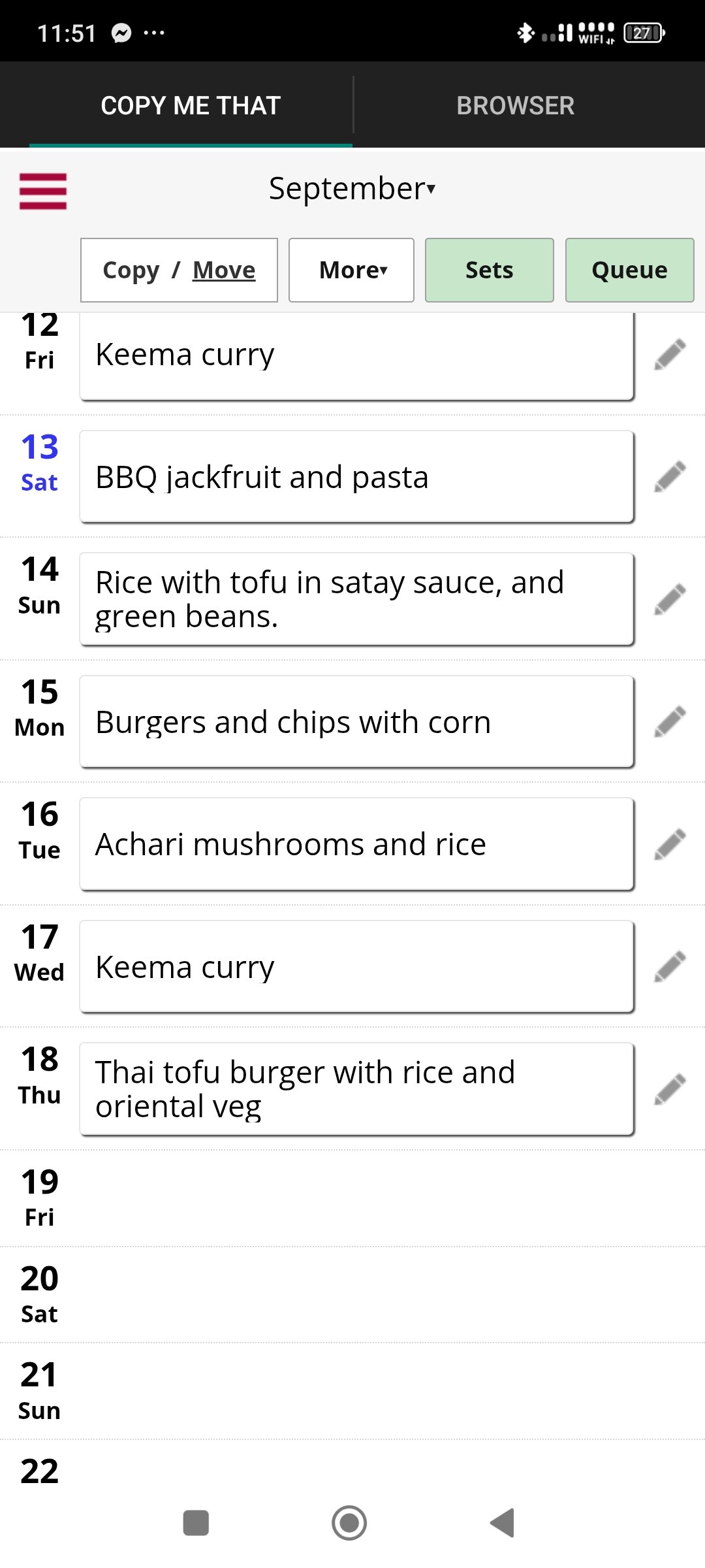 Only just made the pilaf tonight.Just realised I bought some vegan feta to put in it, and forgot to add it 🙃. I didn't end up making the Cajun pasta, so I've moved that forward. I ended up having Lentil and veg soup, with some part baked bread instead. I have leftovers of that which I will use for dinners this week ( lunch in other parts of the country).