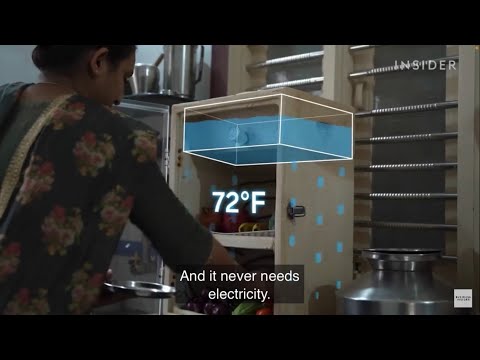 As it's hard to make out parts basically you felt wool ( you can buy fleeces from Ebay if you are not allowed a sheep like me) and make a cover around a box of items or bottles. Then it is just a case of spraying the wool so that the water evaporates leaving the contents cool.