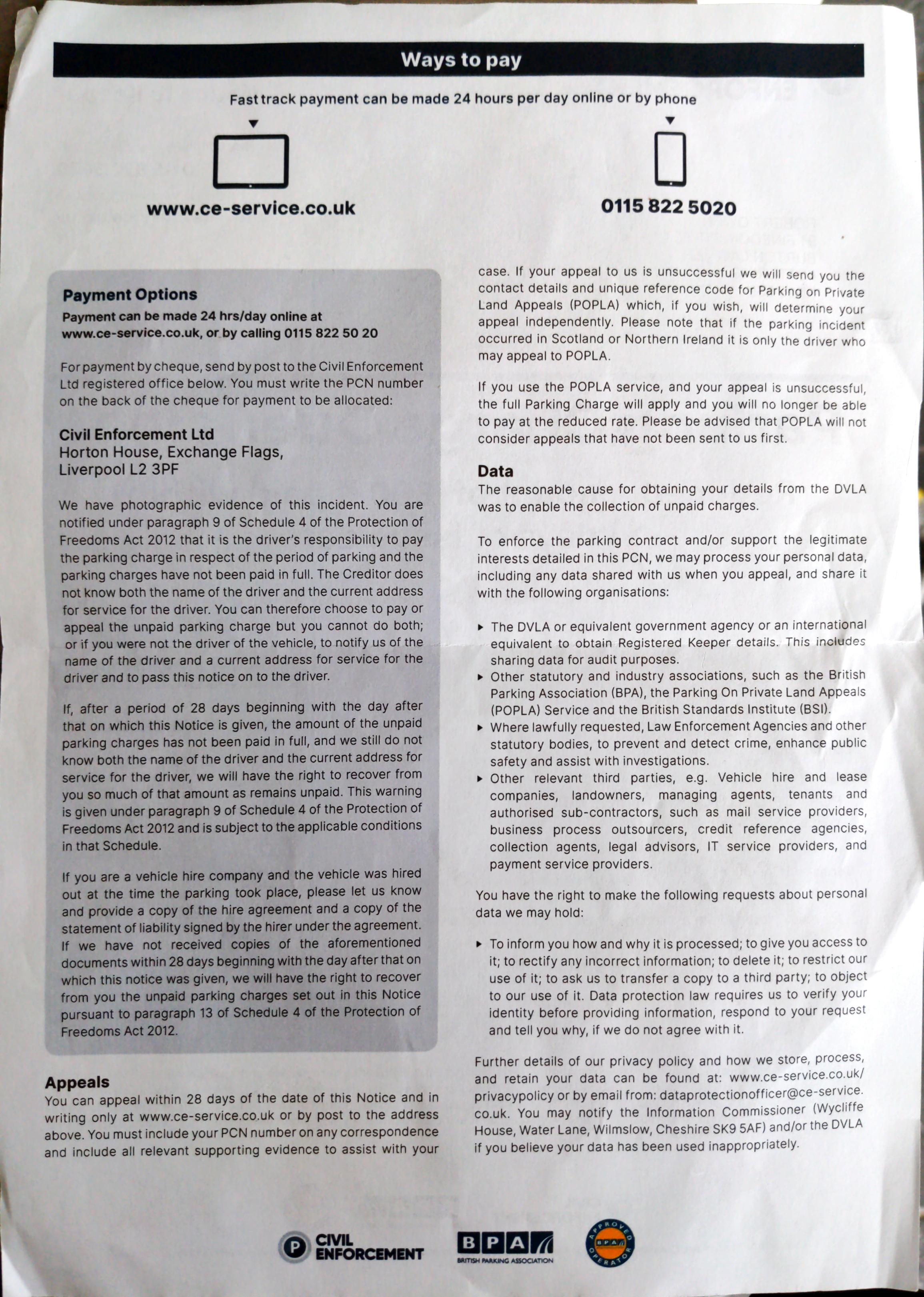 And the NTK has the alleged breach of T&Cs as "Payment not made in accordance with the terms displayed on signage".
