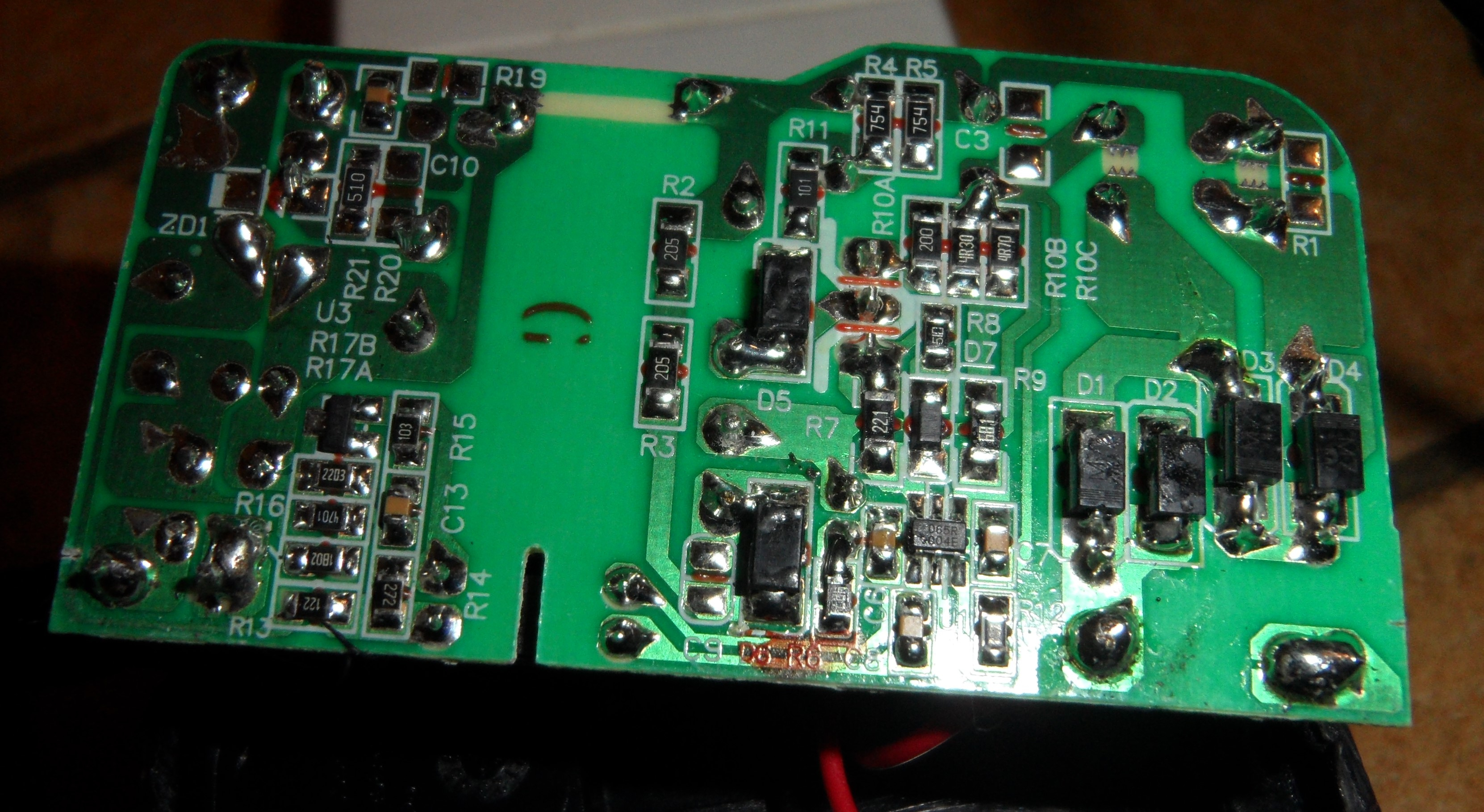 Anyhoo, I will be opening it up for a gander, but was wondering if I'm likely to find summat obvious that could be the cause, like a thermal fuse? These are, I understand, 'switching' PSUs, so may not have a trannie, the usual culprit (along with smoothing caps), but what's might I be looking for inside this jobbie?