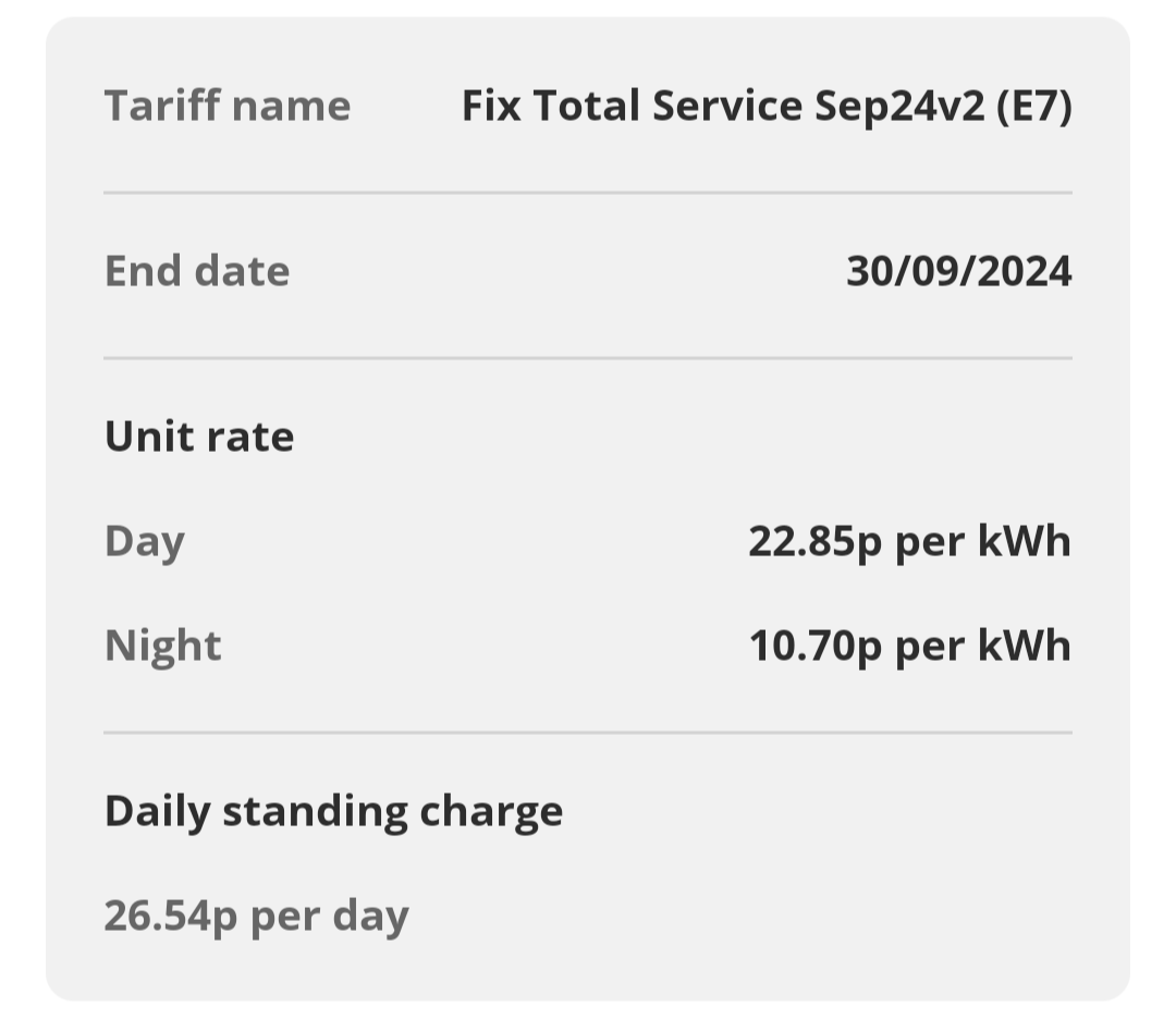 Look at the tariff information section on the suppliers websites, they will all be on there. I am not sure, but from memory I think that October 2021 was already too late for a good fix anyway.JuliaWt said:Hi everyoneNewbie here. We have been having an issue with EDF (long, long, boring story regarding a new account number needed).They have taken from October 2021 until this week to resolve the issue. In this time we have been unable to move away and take up a fixed rate deal elsewhere and have obviously missed out on being able to take a good deal. We were intending to transfer to a new supplier last October.I am now having a discussion with EDF with regards to the compensation that they owe us due to us because we were not able to move in October - the rates have gone up so much in the meanwhile.What I need (and cannot find despite lots of Googling) is information on deals available last October - I can find links to old deals but I particularly need information on the specific rates for standing charges, days rates and Economy 7 rates.If someone could point me in the right direction to find this information it would be very much appreciated.0 -