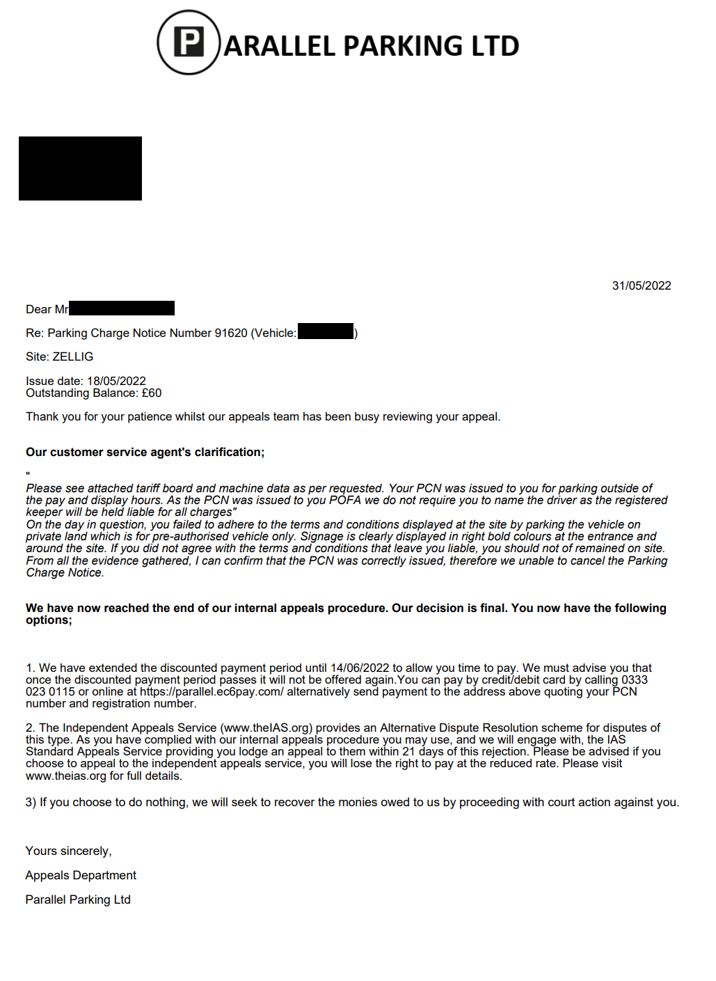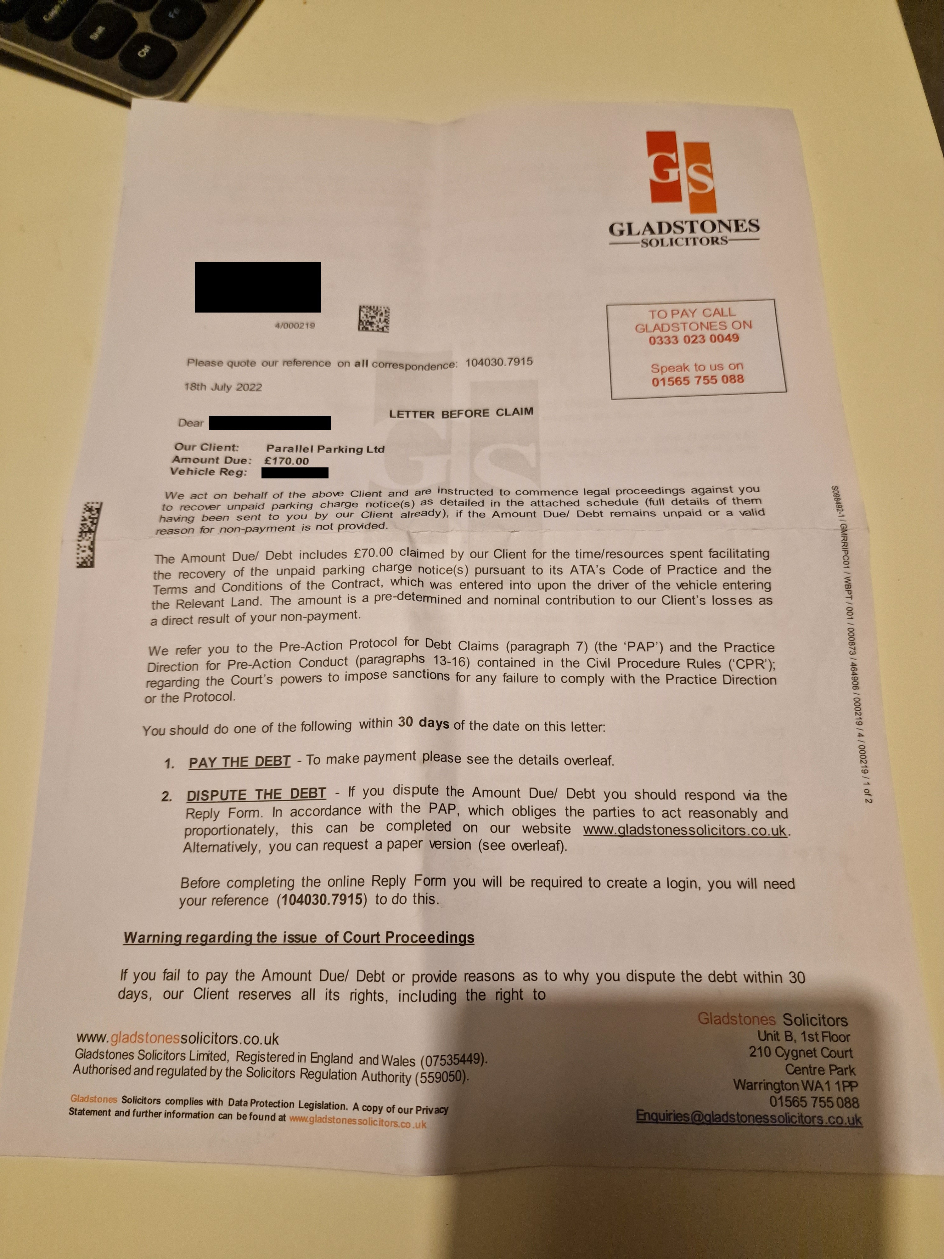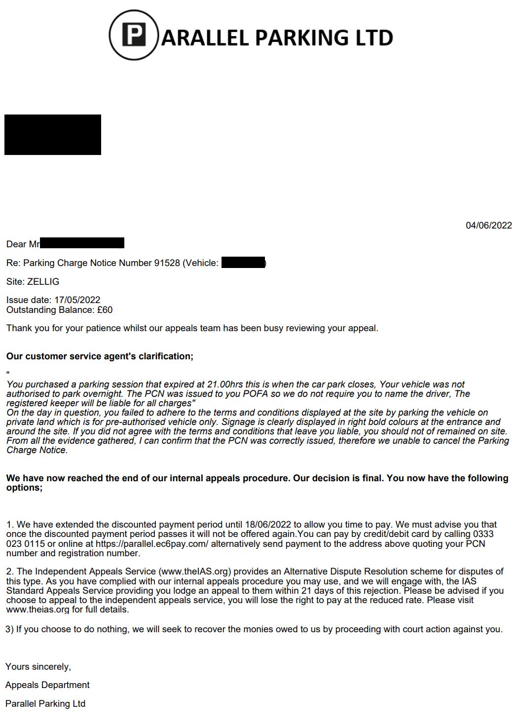 Parked there late at night as I was staying nearby and paid for parking, apparently I left too late the following morning.Coupon-mad said:Yep, you can see the POFA wording there. So they can hold the keeper liable.