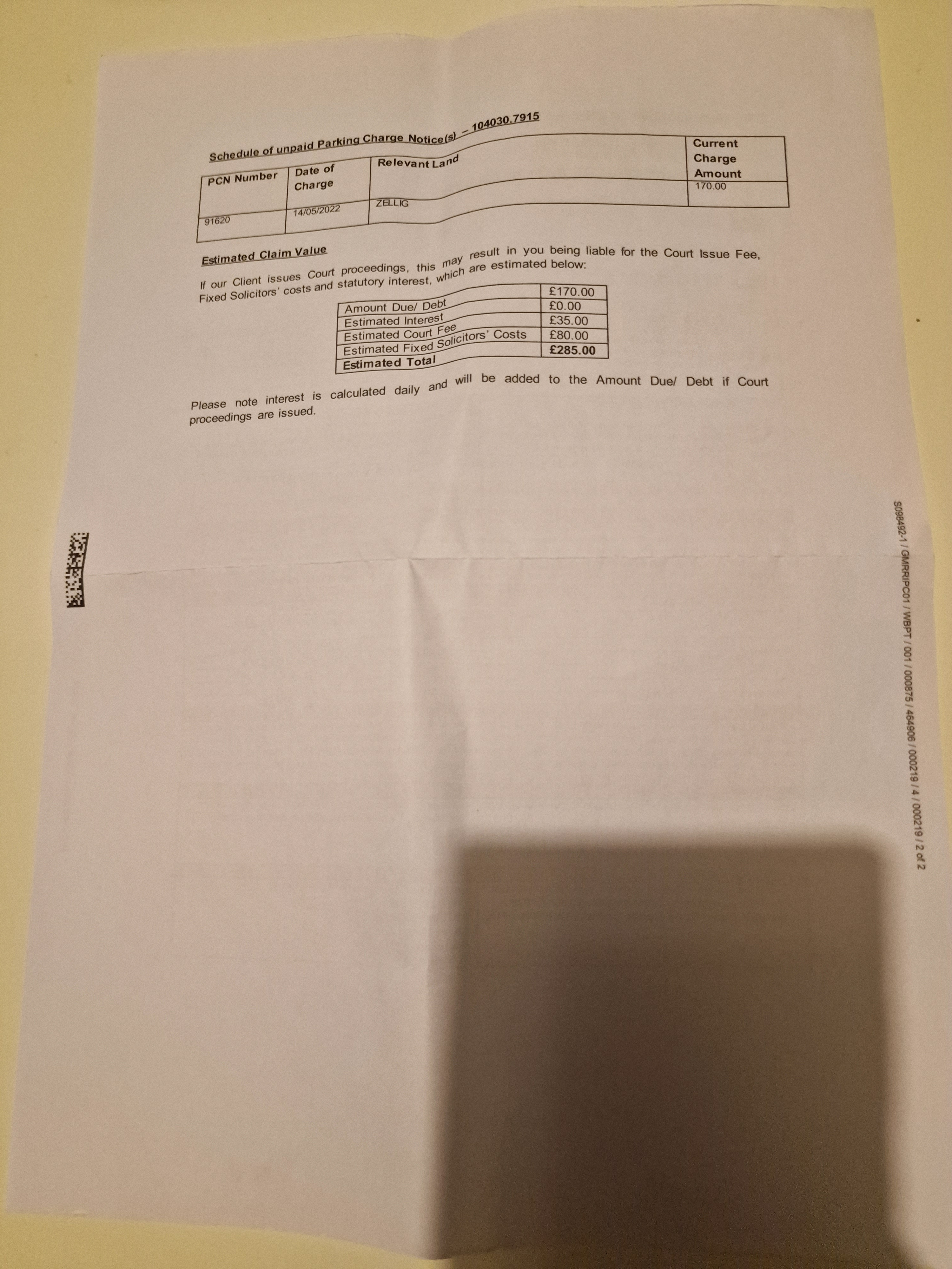 Great, thank you so much for your help mate, really appreciate it!Umkomaas said:Ignore them from here unless you receive a Letter of Claim from their solicitors or a formal Court Claim via the Northampton CCBC.That sign outlining the hourly charges has nothing indicated whatsoever on it about the £100 PCN for any breach. That's the contract between them and you. Very helpful to you should this reach a court case.
