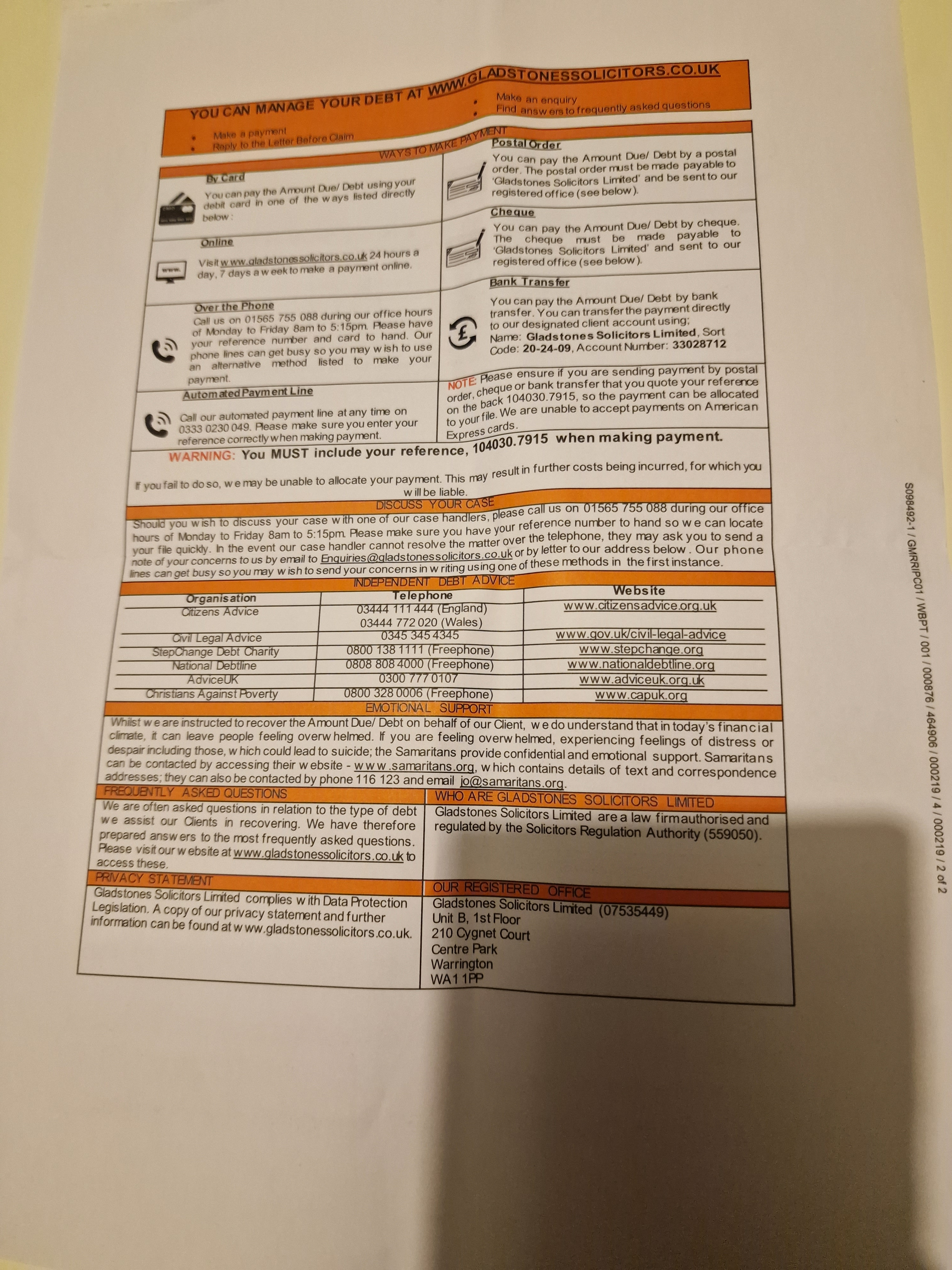 That second post of the NEWBIES thread should be your first port of call from this point on - right through any court claim. Please read that before asking any further questions.2 -