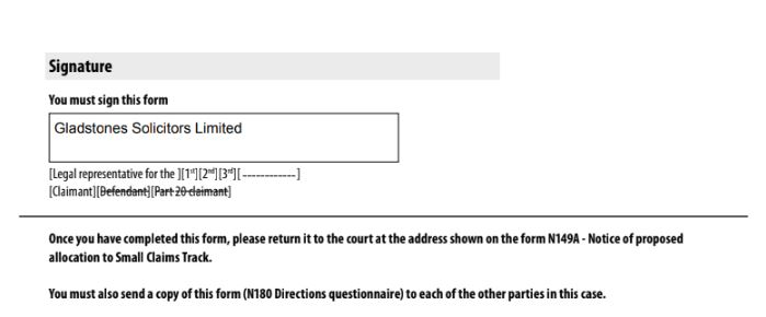 Please find enclosed a copy of the Claimant’s completed Directions Questionnaire, which has also been filed with the Court."