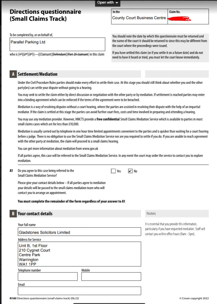 I have attached said completed Directions Questionnaire here. Any advice on next steps would be great..