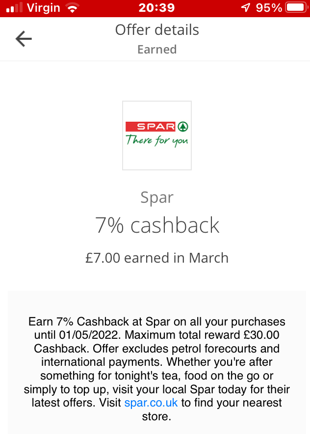 What were the conditions of the cashback offer? Was there a maximum amount on which cashback would be paid?HumberFlyer said:RESOLVE ISSUES: Simple for them to resolve an issue, seems not..... numerous live chats / letters saying it is resolved..... it's not, I give up............ In March £300.79 spent on the same day under the 7% cashback offer. Cashback received £10.56......... that is not 7%.