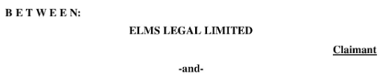 Elms Legal are not the Claimant. This has been discussed at length earlier in the thread.