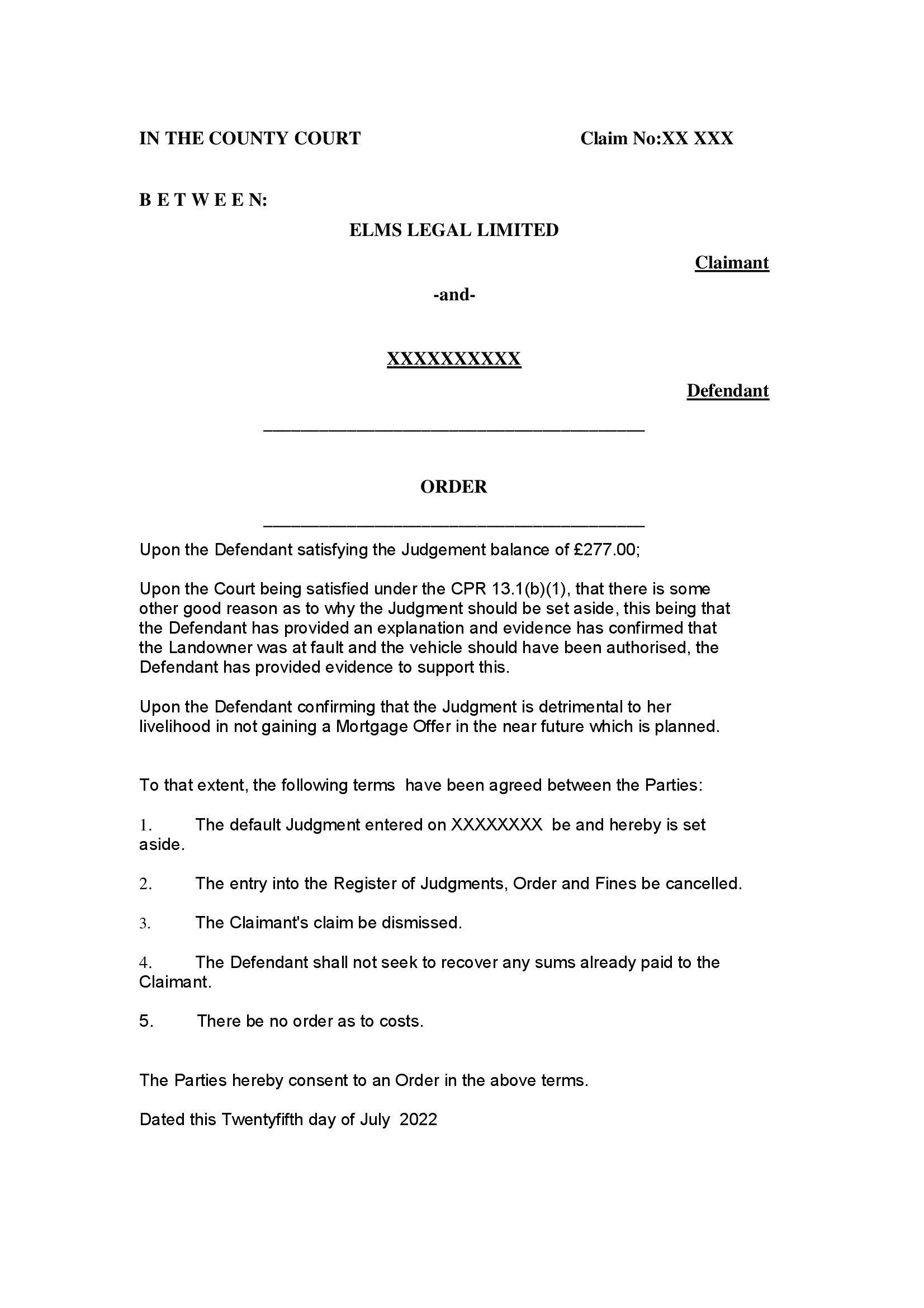 So it was a draft Consent Order. You got them to sign it and consent, that quickly? No point sending the court an unsigned Consent Order.PRIVATE 'PCN'? DON'T PAY BUT DON'T IGNORE IT (except N.Ireland).