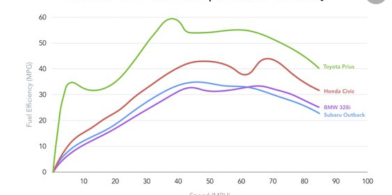 It is likely with EV's that the sweet spot is a lot lower though, here's an example from Tesla, I've looked at some other EV's and it seems to be around 20-40 mph for max efficiency.