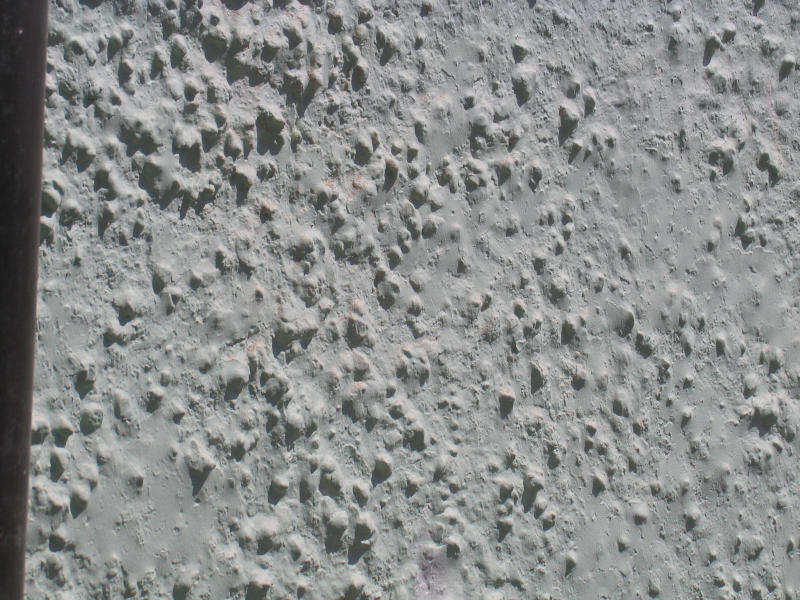 It is a lime based render (possibly gauged with OPC) over the top of a very hard base coat. Over the last 90+ years, it has been painted with an assortment of finishes, including stuff like Sandtex. Large patches have fallen off on one wall, and other areas sounded hollow...0