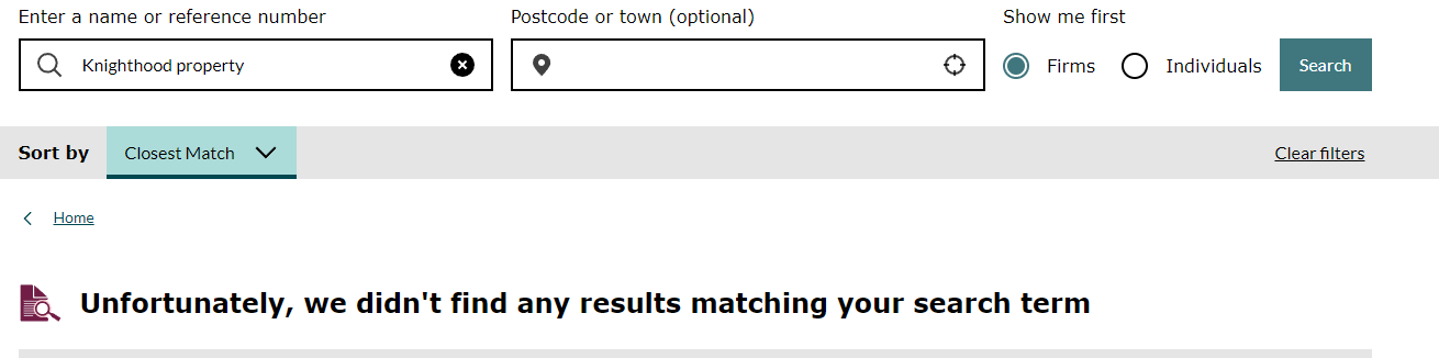 There is a company at companies house (or rather was) called knighthood property but it was dissolved.in 2015 and never appeared to trade.