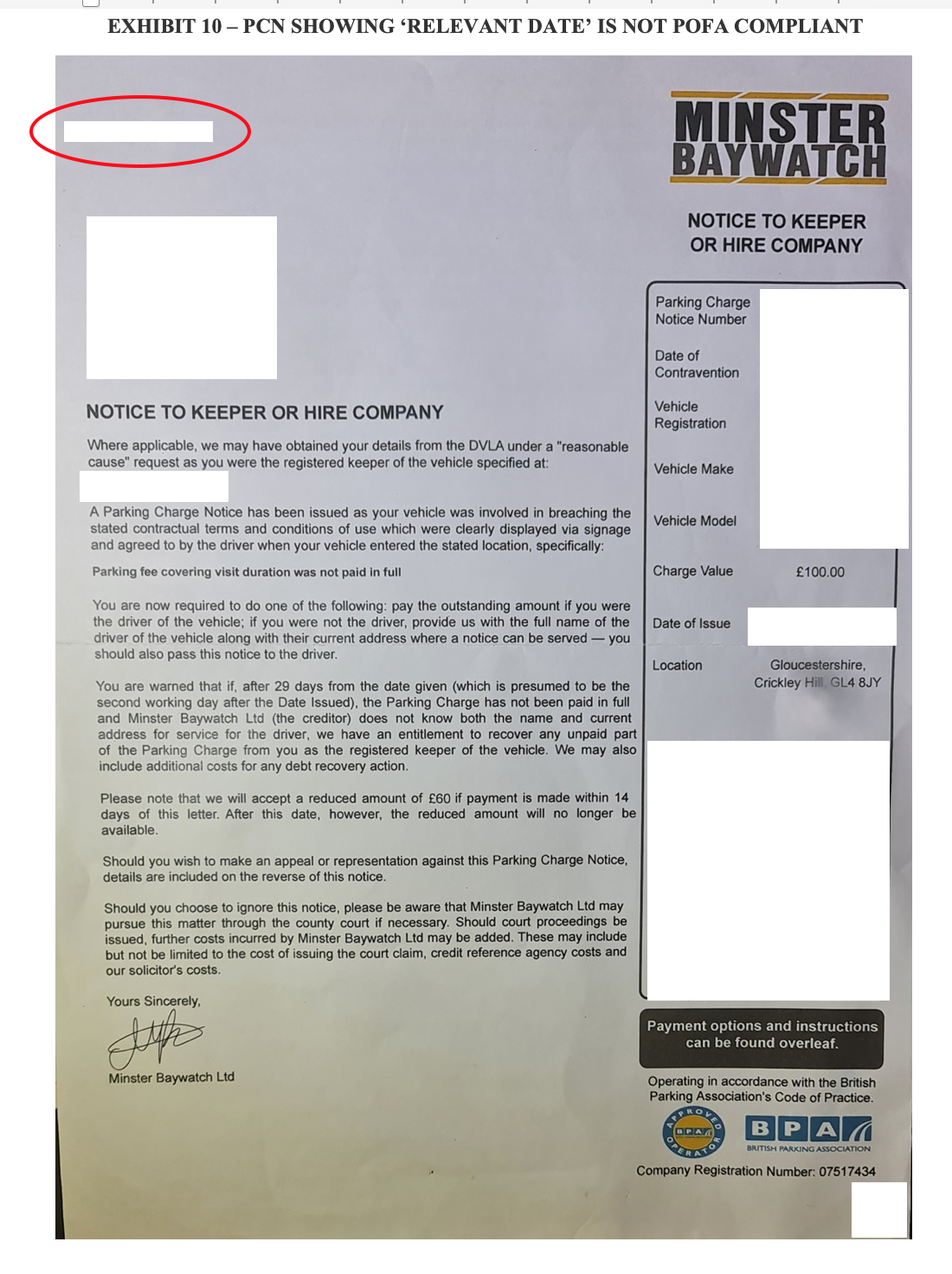 15. I believe the notice to keeper was not compliant with the Protection of Freedoms Act 2012 (PoFA) and therefore incapable of holding the keeper liable with the ‘keeper liability’ requirements set out in the PoFA, Section 4. PARA 9 (Exhibit 09) states: