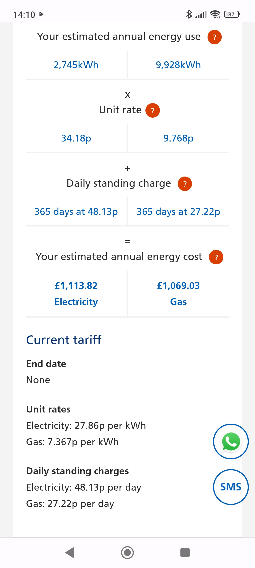 Personally, I'd be very happy with that deal. I'm an EDF customer ex Utility Point, and the two year deal offered to me (West Midlands, if it makes much difference) has the same standing charges but unit prices of 40.86 for electricity and 11.111 for gas.paulant1803 said:Would someone kindly work out the percentage difference for me and see whether this is a worthwhile fix. My son will be leaving home this month and this leaves just my wife and I therefore there will be slightly less usage but.......