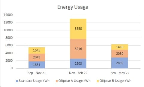 Your bar chart looks entirely normal for the coldest months of the year, and no sign that the clock was stuck during that period as your 'standard' use should have fallen dramatically if that has been the case...penfold777 said:The way the property is wired there are 2 offpeak meters with some NSH connected to each, represented here as offpeak A and B.So if the timer was stuck on offpeak, the NSH would still have drawn power outside of the set time (according to the INPUT setting) but that is still using energy when I didn't want to use them (or pay for). Difficult to judge without a benchmark, but seems way over would it should be.