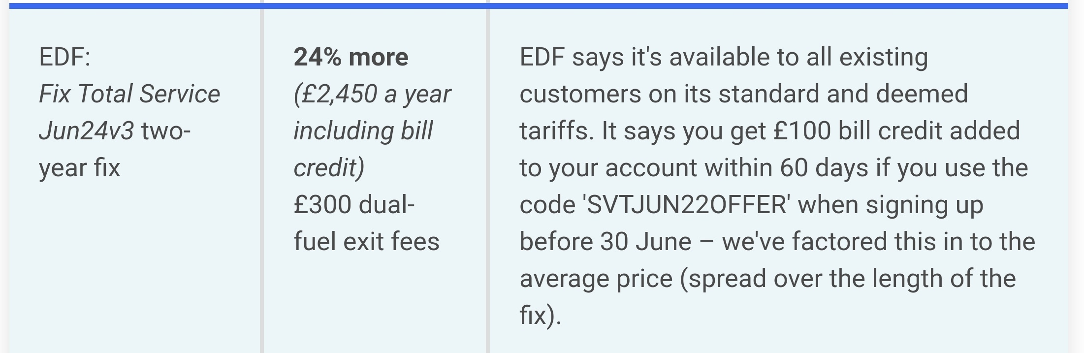 I can take the offer, but I am not going to as it just about makes sense taking into account low summer usage with higher winter usage through to April 2023. However the fact that it will lock me in until 2024 with hefty exit fees means I am not willing to take a gamble that I am not willing to take as I think it will be significantly over priced for the second year, as well as over priced for the next four months. If it was a one year fix I would have already taken it, but there is a very obvious reason why it is not.0