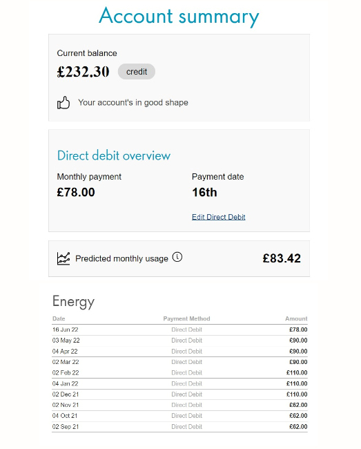 I am with Shell Energy. I am £234 in credit. A notification on the app suggested I reduce the payment amount from £90 to £78 per month......of which I have now done.0