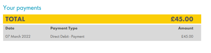 Since than until 16/06/22 you have paid 3 debit orders of £45 -= £135. You have used electricity for 192.08 and gas 103.02, so your debt increased by £160.10.