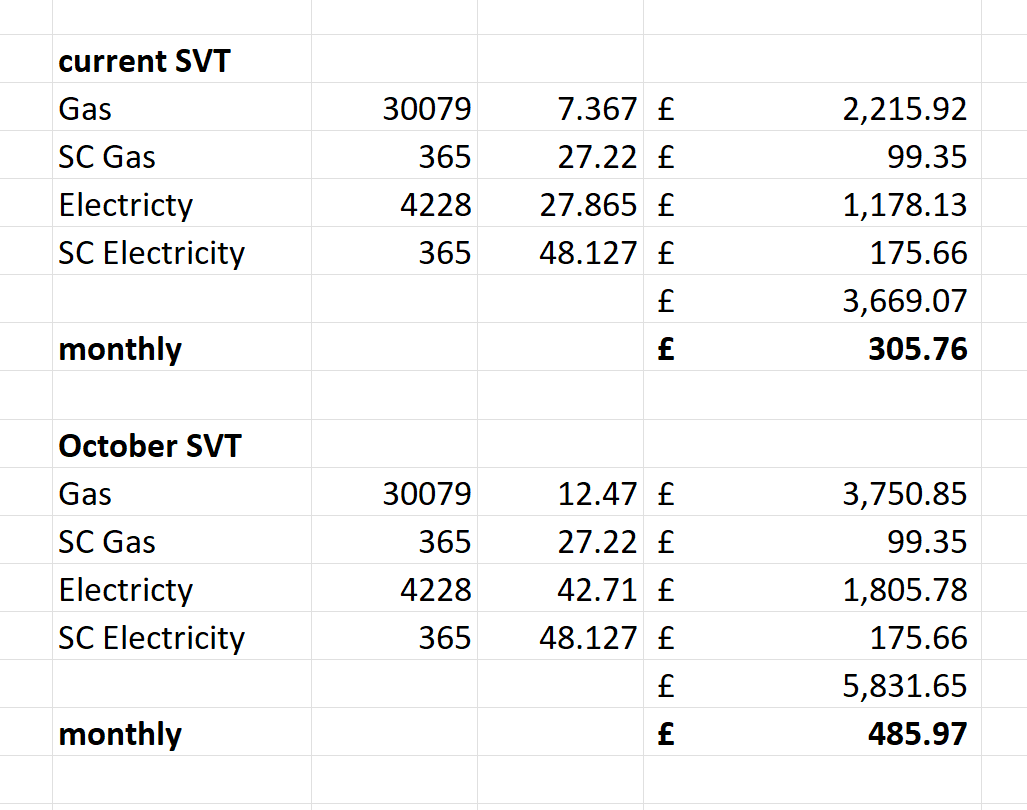 If you calculate it back to 12 months period you get to 4228KWh electricity and 30079KWh gas. At current cap and future cap your cost for 12 month would be.
