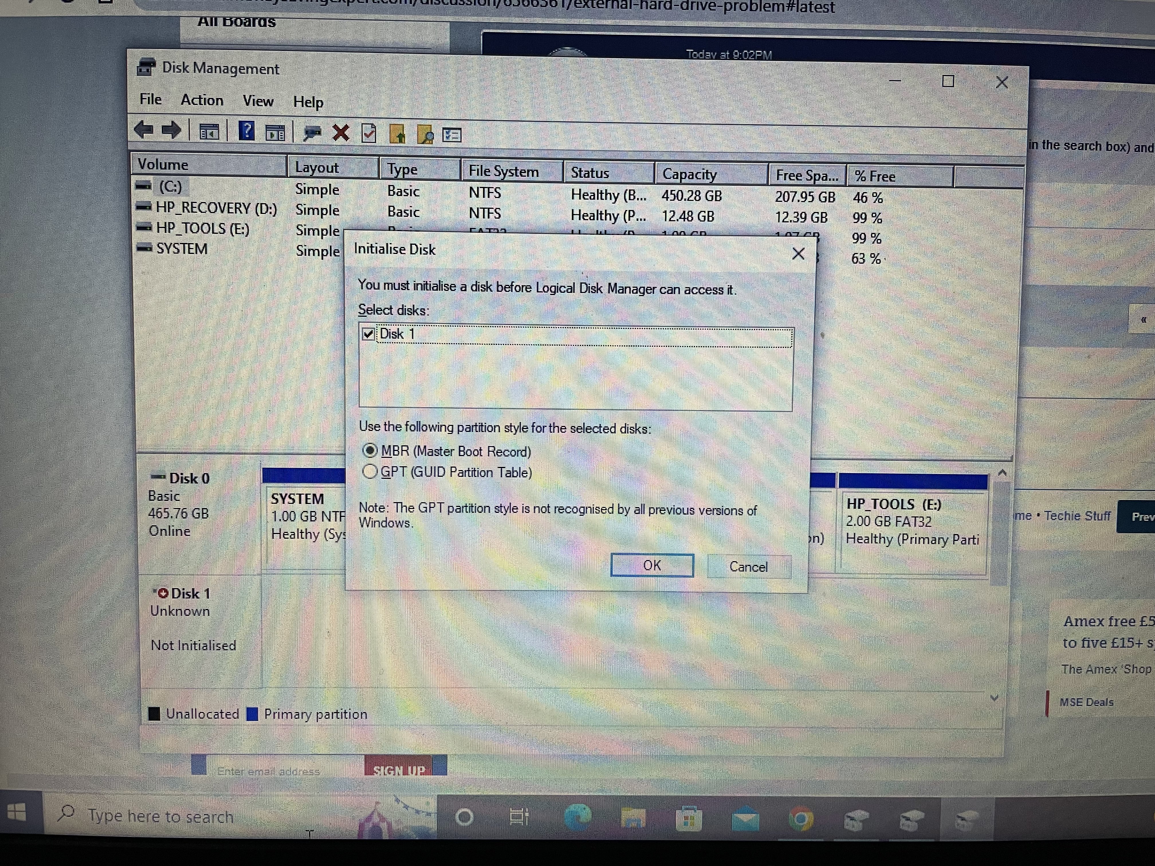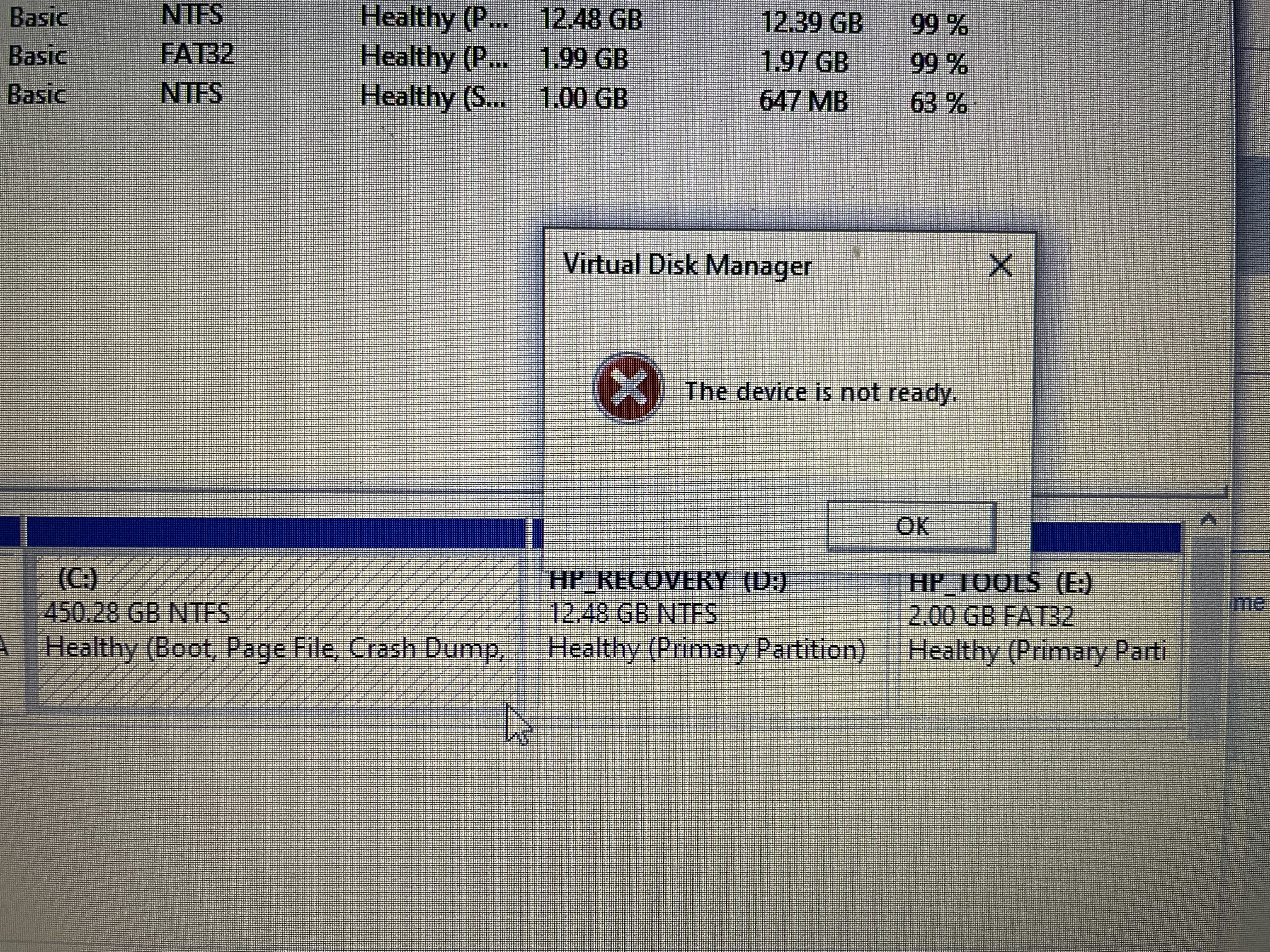 You keep telling us that. Please run diskmgmt (type it in the search box) and show us the picture of that.bignred05 said:despite running several Chkdsk I can not see the hard drive under File Explorer/My Computer0